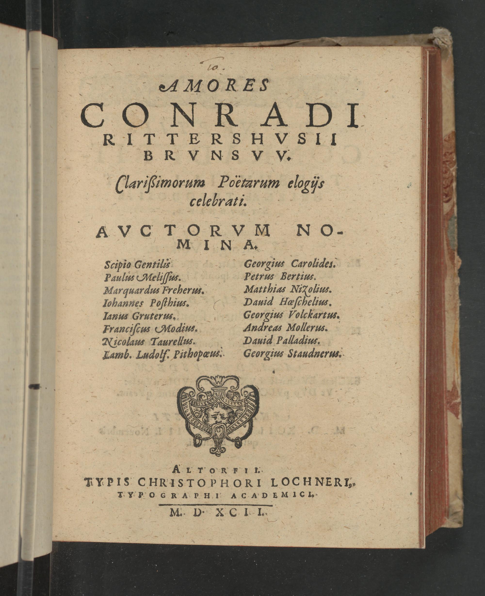 Amores Conradi Rittershusii Brunswicensis Rittershvsii Brvnsw. clarißimorum poetarum elogijs celebrati ...