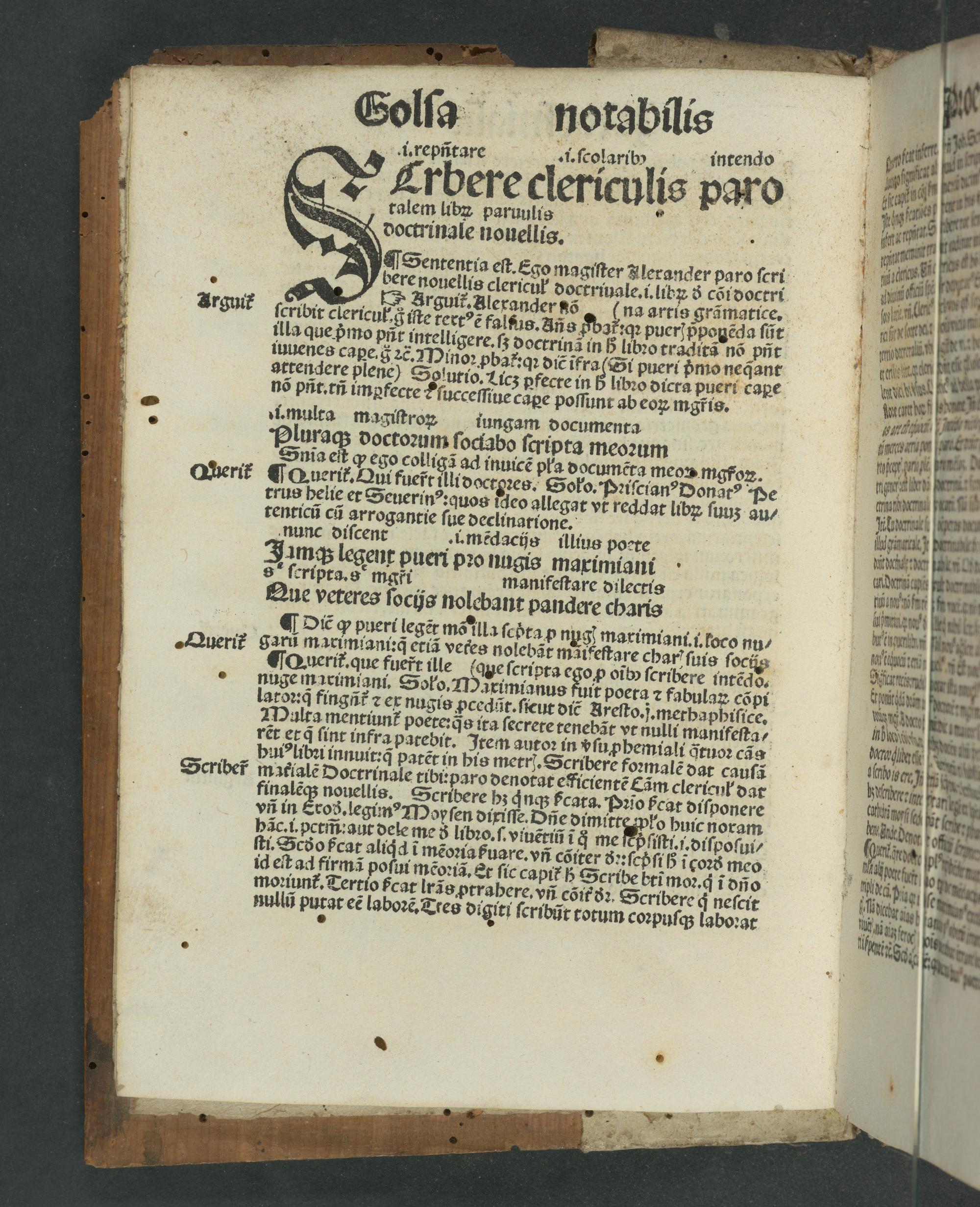 Prima[-quarta] pars doctrinalis magistri Alexandri cum sententijs, notabilibus. vocabulorum lucida expositio[n]e. non nullis annexis argumentis cum eorundem replicis : ad nouellorum in grammatica incipientium profectum. cum quibusda[m] alijs aditis pro in scientijs aliqualiter prouectis