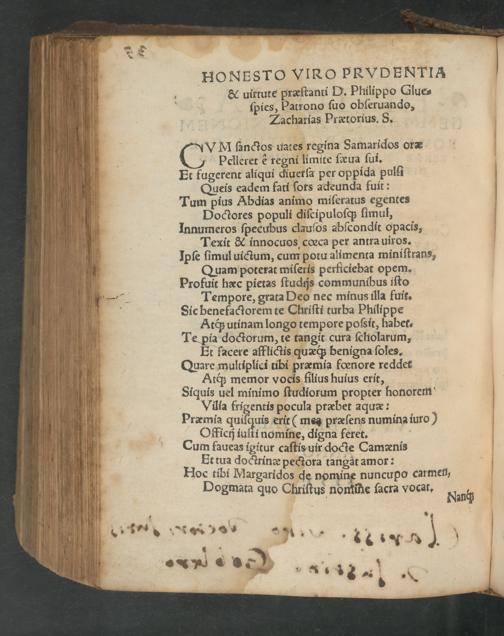 Historia Gemmae Qvam Vnionem Romani, Margaritvm Caeterae Nationes Nominant : Addita Allegorica Interpretatione / Carmine scripta ad Dominum Philippum Glvespies Civem Ampliss. In Oppido Mansfeld ; A Zacharia Praetorio Mansfeldensi, [Epigramma Casp. Pevceri de Margarito]