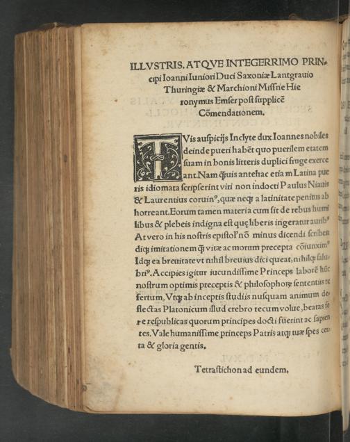 Opuscula Hieronymi Emser Dvcalis Secretarii, Qvæ In Hoc Libello Continentvr : Ad Illu. Principem Ioannem Iuniorem Saxoniae Ducem &c. Epistola, Tetrastichon ad eundem : Nobilium & ingenuorum puerorum epistolaria progymnasmata epistolijs centum numero : Ad Nobilem adolesce[n]tem Hernestum de Schlynitz Epigramma : Ad eundem epigramma aliud ex sententia Musonij philosophi, Epistola Philippi Beroaldi .fe.re. ad Hieronymum Emser de motibus eiusdem d[omi]ni Hernesti de Schlynitz : Epitaphium eiusdem Philippi Beroaldi ab eodem Hieronymo Emser æditum