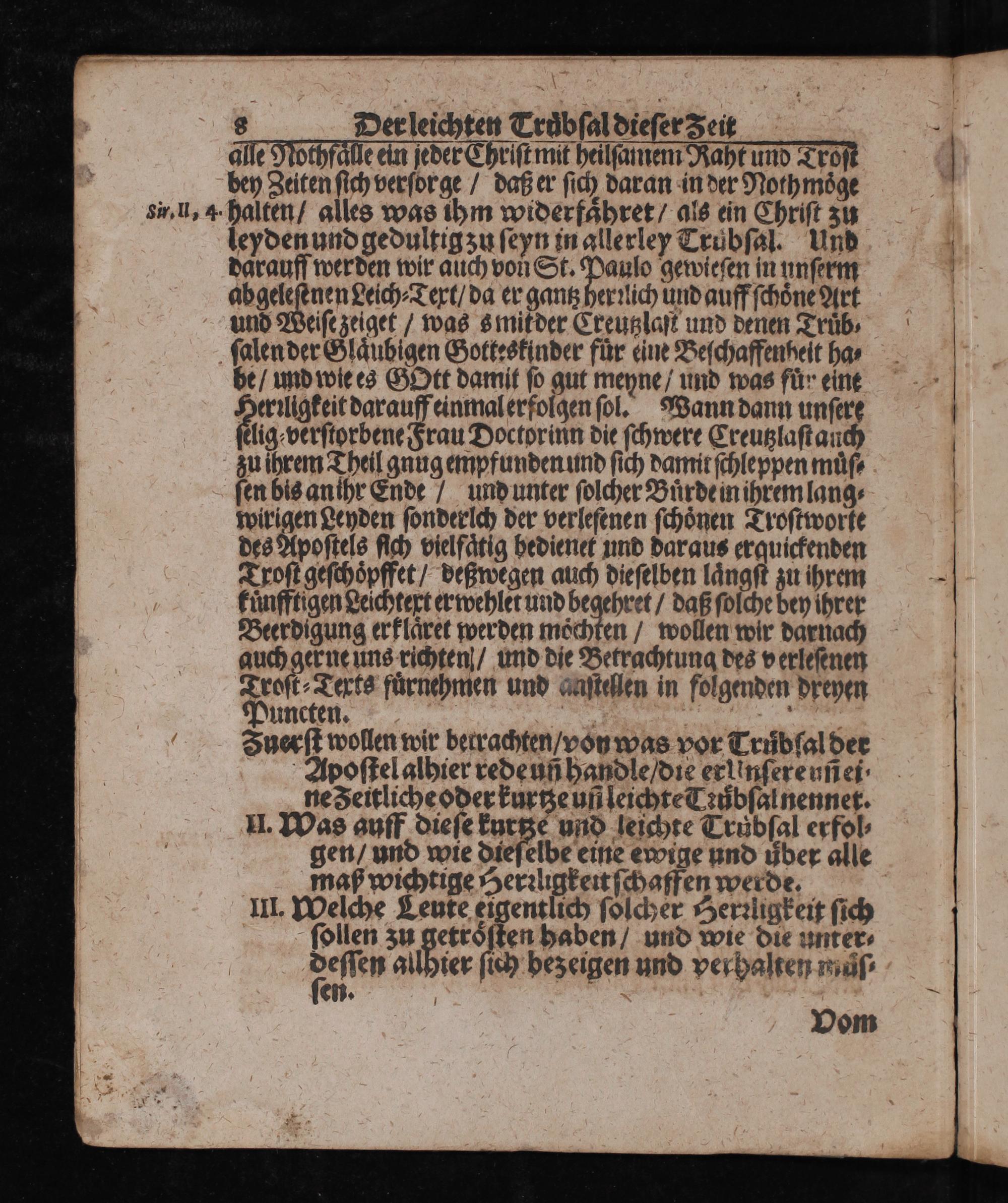 Momentaneae Afflictionis Æterna Gloria : Der leichten Trübsal dieser Zeit Ewig-folgende Herzlichkeit, Aus dem herrlichen Trost Spruch des Apostels II. Corinth: IV, 17,18 : Unser Trübsal, die zeitlich und leicht ist, schaffet eine ewige und über alle maß wichtige Herzlichkeit, [et]c. : Bey Christlicher Leich-Begängniß Der Heyland Edlen, viel Ehr- und Tugendreichen Fr. Marien Achterman[n]s, Des Edlen, Vest- und Hochgelahrten Herrn D. Hermanni Konerdingen, Fürstlichen Braunschweigischen Lüneburgischen Archiatri, gewesenen herzlieben Haus-Ehren, Am 6. Tage des Monats Junii, im Jahr MDCLXVIII. In der hiesigen Marien-Kirchen zubetrachten / vorgetragen von Brandano Dætrio, S.Th.D. Fürstlicher Ober-Hof-Prediger und Abten des Closters Riddagshausen