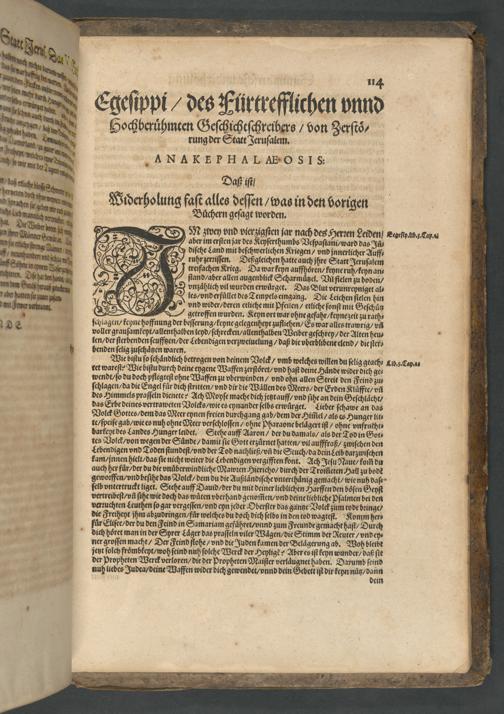 Egesippi, des Hochberühmten Fürtrefflichen Christlichen Geschichtschribers, fünff Bücher: Vom Jüdischen Krieg, vnd endlicher zerstörung der Herzlichen vnd gewaltigen Statt Jerusalem : ... Sam[m]t eynem nutzlichen Register vnd schönen Figuren/ Jetz newlich auß dem Latein auffs trewlichest verteutschet, mit kürtzen Summarien aller vnnd jeder Bücher vnd Capitel, Auch ordenlicher Jarechnung gezieret, vnd mit Concordantzen bey des auff die Heylige Bibel vnd vnsern newen Teutschen Josephum gerichtet