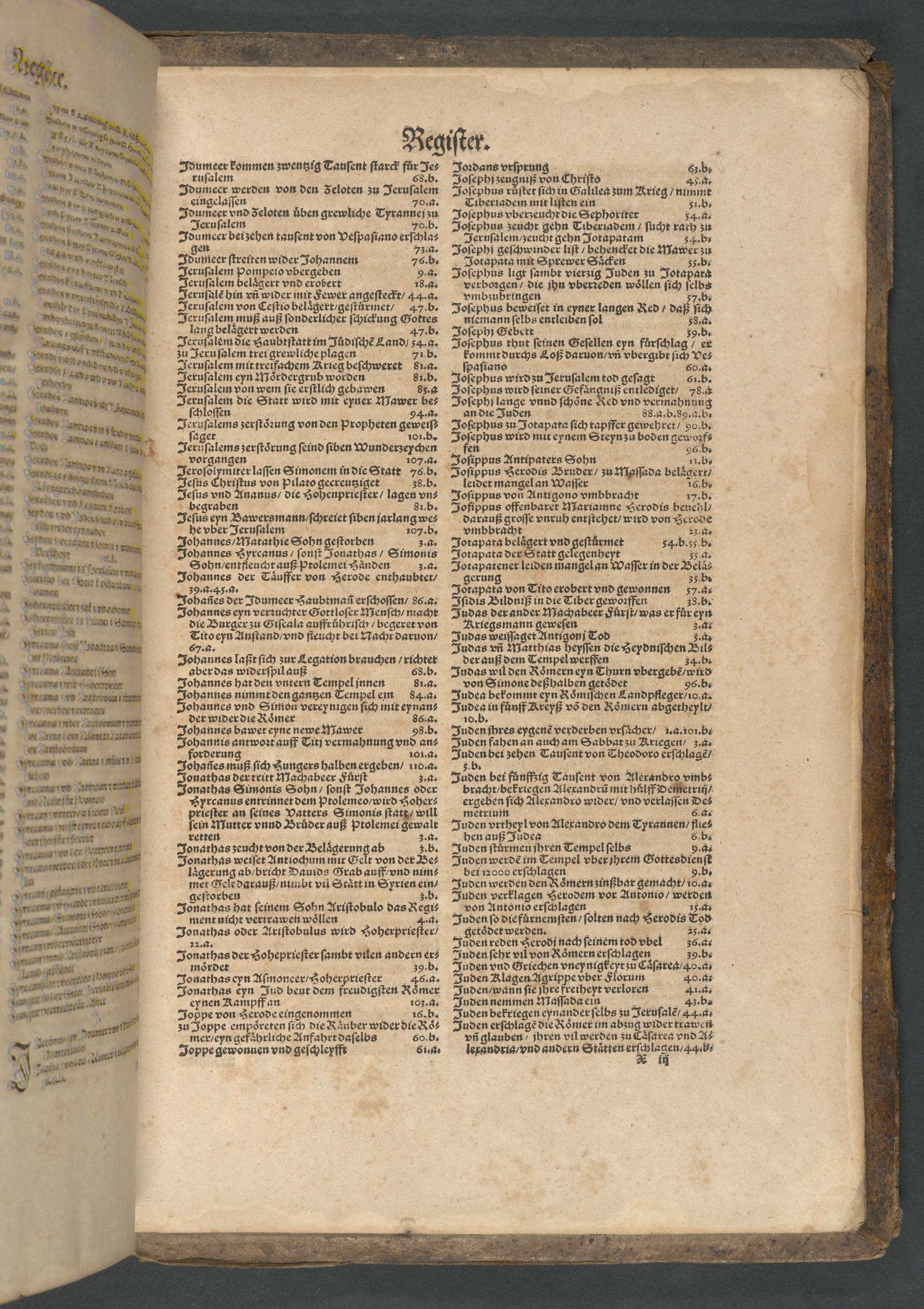Egesippi, des Hochberühmten Fürtrefflichen Christlichen Geschichtschribers, fünff Bücher: Vom Jüdischen Krieg, vnd endlicher zerstörung der Herzlichen vnd gewaltigen Statt Jerusalem : ... Sam[m]t eynem nutzlichen Register vnd schönen Figuren/ Jetz newlich auß dem Latein auffs trewlichest verteutschet, mit kürtzen Summarien aller vnnd jeder Bücher vnd Capitel, Auch ordenlicher Jarechnung gezieret, vnd mit Concordantzen bey des auff die Heylige Bibel vnd vnsern newen Teutschen Josephum gerichtet
