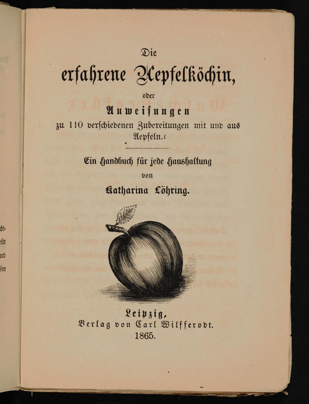Die erfahrene Aepfelköchin, oder Anweisungen zu 110 verschiedenen Zubereitungen mit und aus Aepfeln : ein Handbuch für jede Haushaltung / von Katharina Löhring