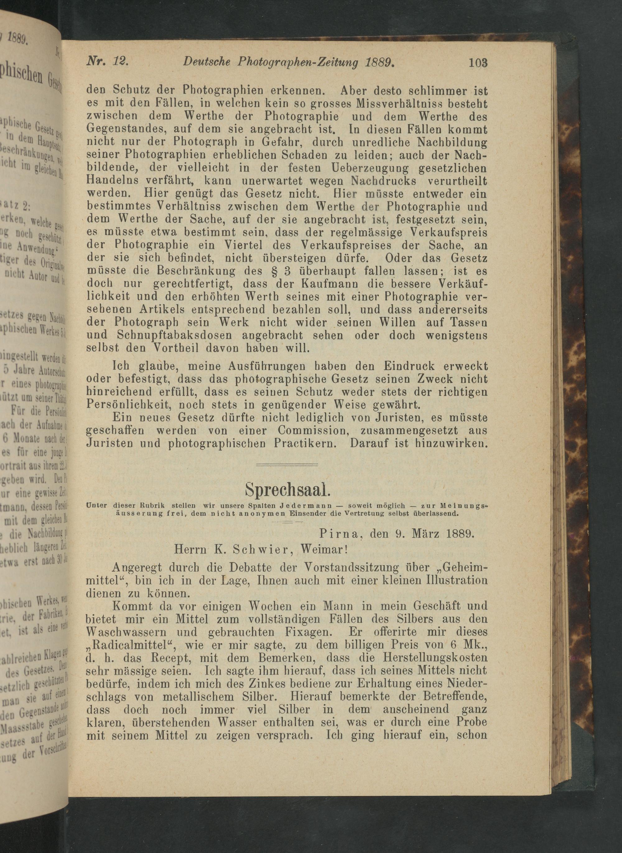 Nr. 12. Deutsche Photographen-Zeitung 1889. 103