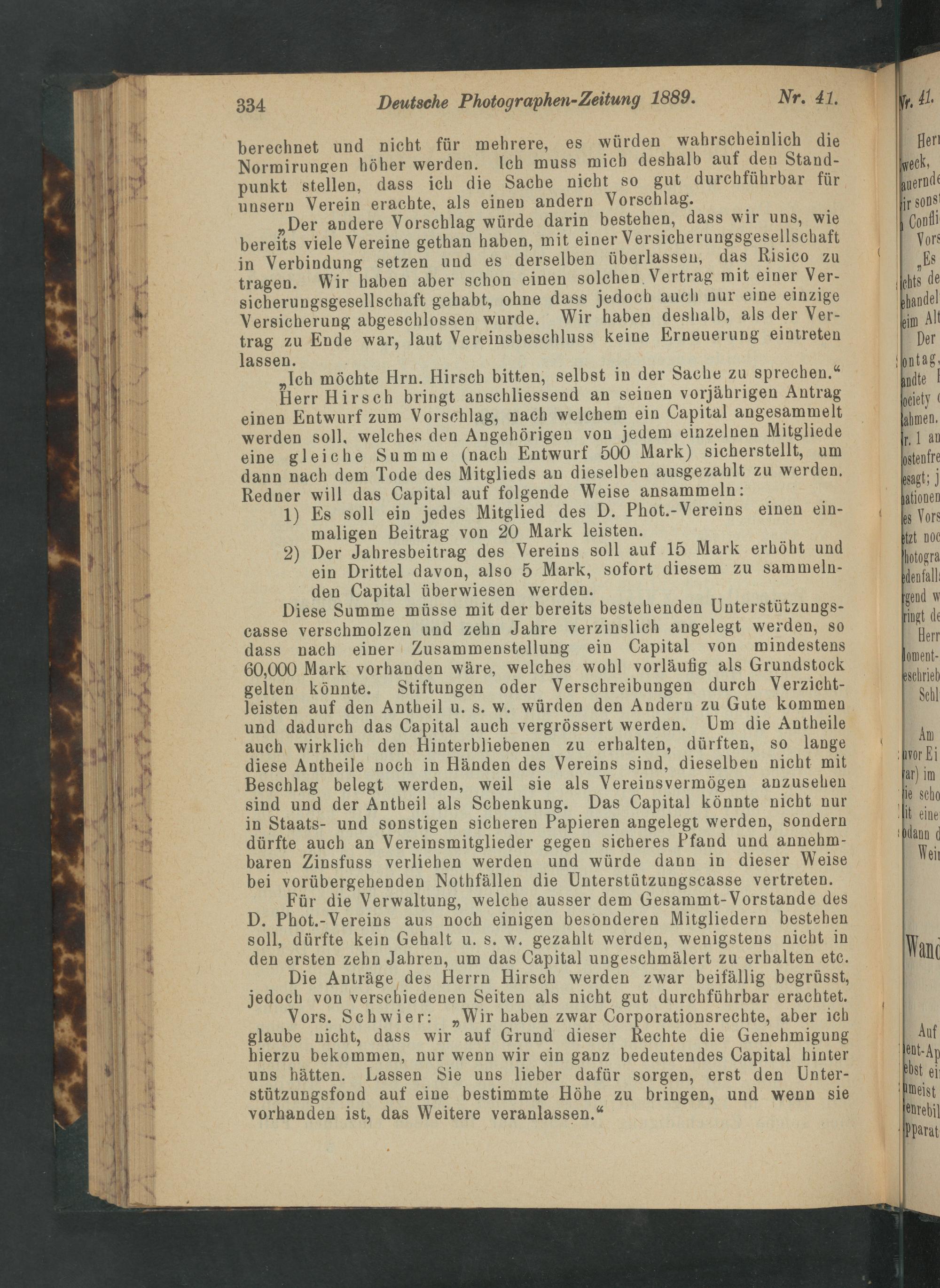 Vors. Schwier:„Wir haben zwar Corporationsrechte, aber ich glaube nicht, dass wir auf Grund dieser Rechte die Genehmigung hierzu bekommen, nur wenn wir ein ganz bedeutendes Capital hinter uns haâtten. Lassen Sie uns lieber dafür sorgen, erst den Unter- stützungsfond auf eine bestimmte Höhe zu bringen, und wenn sie vorhanden ist, das Weitere veranlassen.“