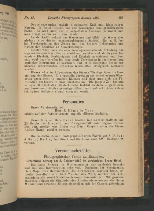 Photographischer Verein zu Hannover. Ordentliche Sitzung am 2. October 1889 im Vereinslocal Bruns Hötel.
