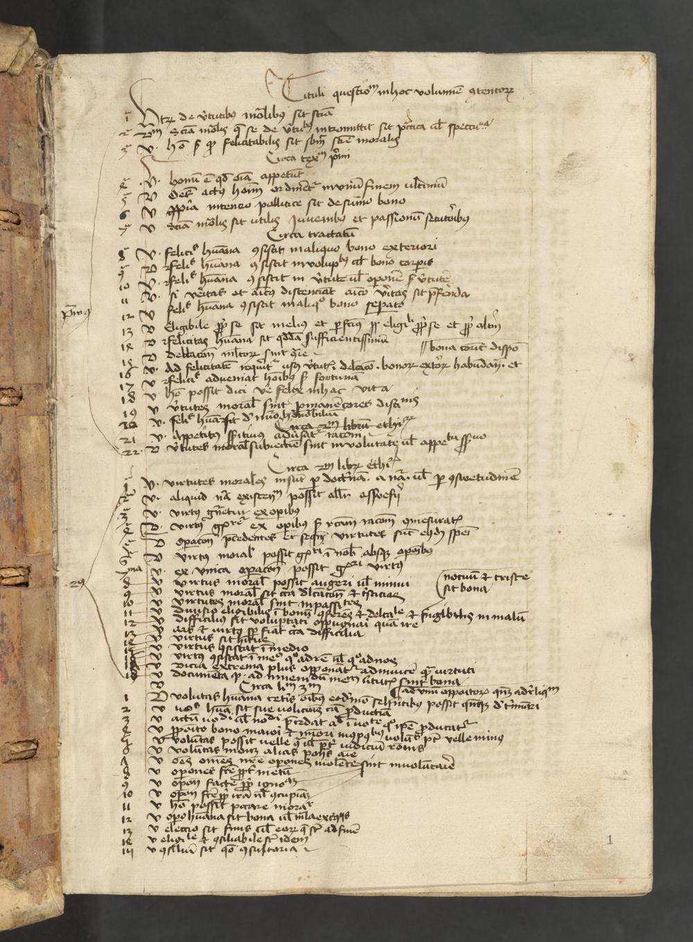 1r-385vb Johannes a Ulma: Quaestiones super libros I-V ethicorum Aristotelis (secundum Johannem Buridanum)