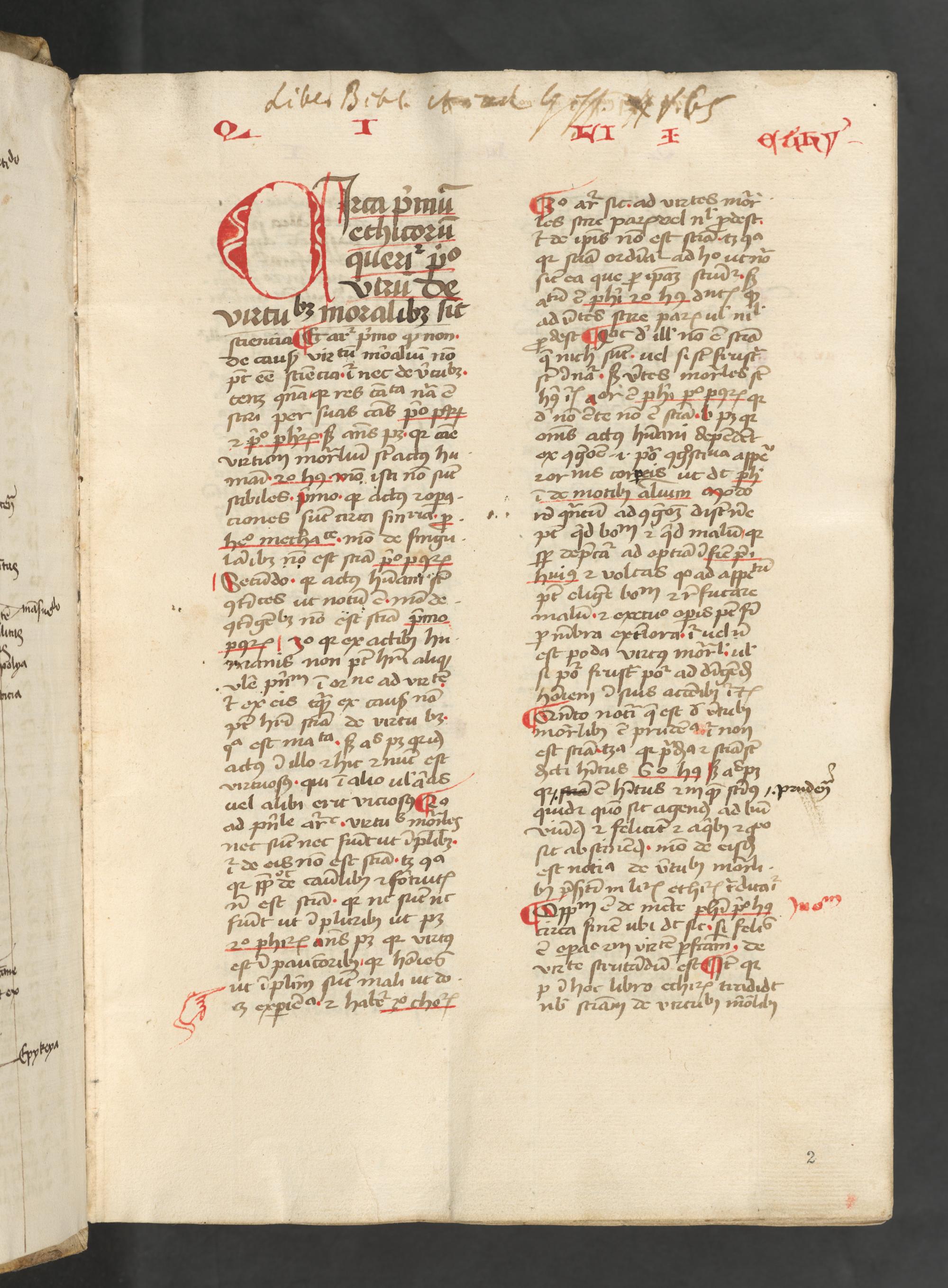 1r-385vb Johannes a Ulma: Quaestiones super libros I-V ethicorum Aristotelis (secundum Johannem Buridanum)