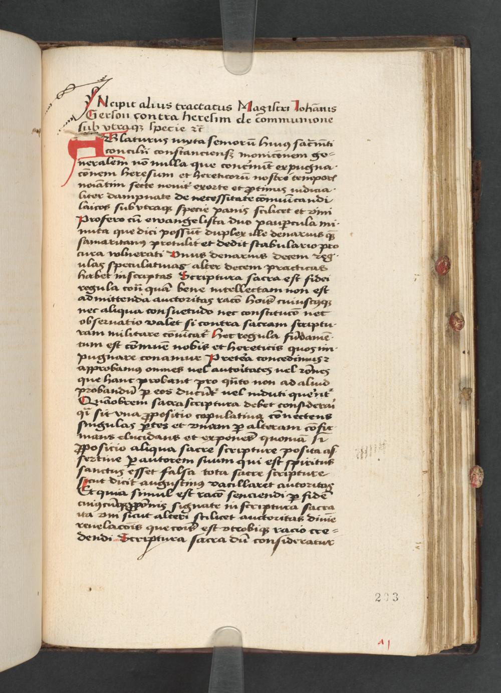 203r-209v Johannes Gerson: Tractatus de necessaria communione laicorum sub utraque specie