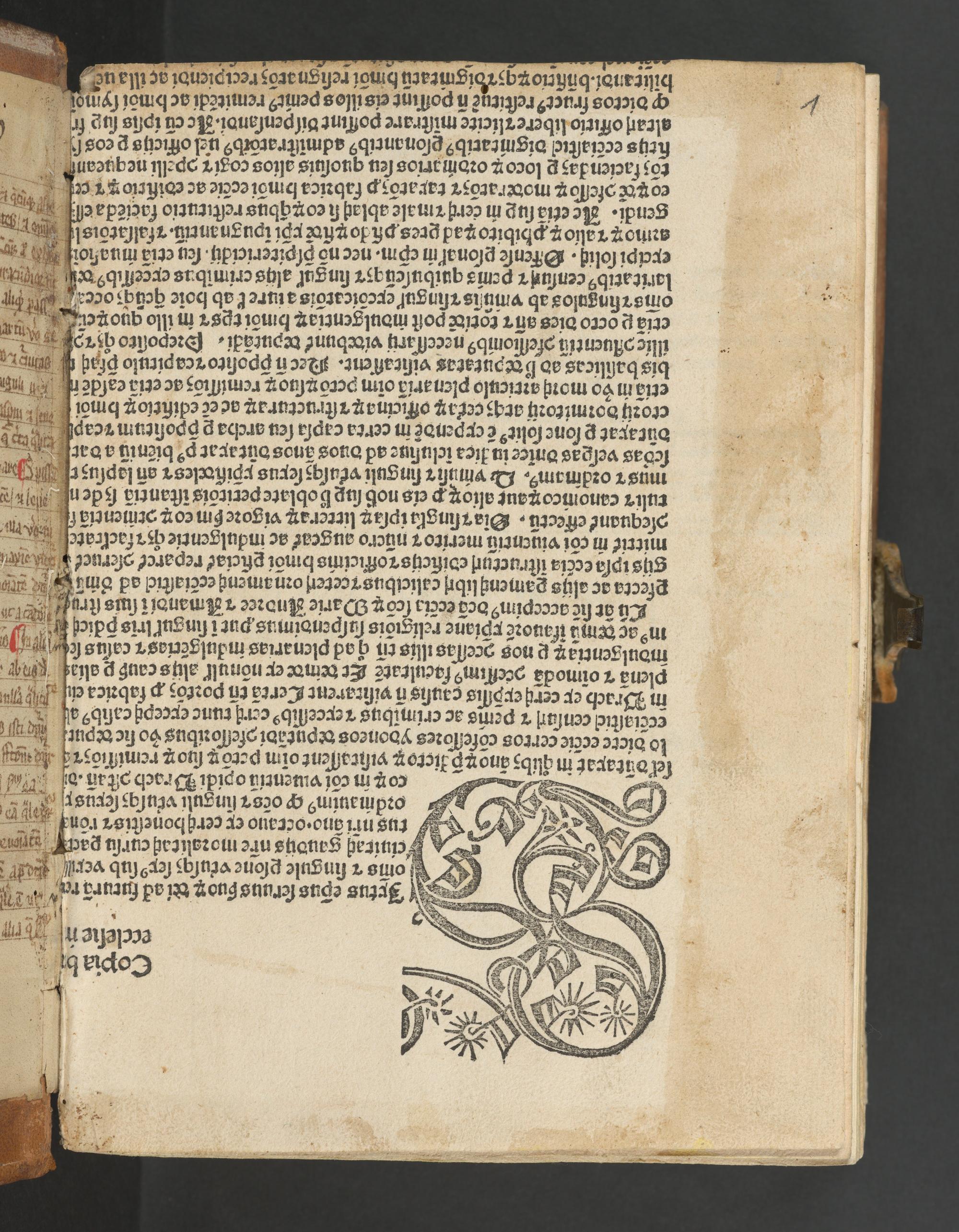 1r Fragment eines Einblattdruckes: Sixtus IV. papa: Bulla (Sancto ac pio desiderio). Betr. Ablass zum Besten der Kirche SS. Mariae, Andreae et Amandi zu Urach (Rom, 5.1.1480/81)