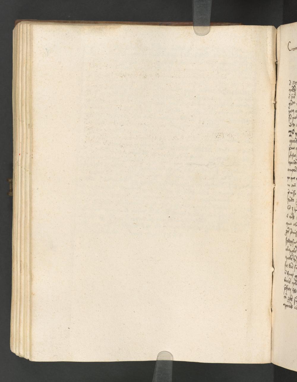 1r Fragment eines Einblattdruckes: Sixtus IV. papa: Bulla (Sancto ac pio desiderio). Betr. Ablass zum Besten der Kirche SS. Mariae, Andreae et Amandi zu Urach (Rom, 5.1.1480/81)