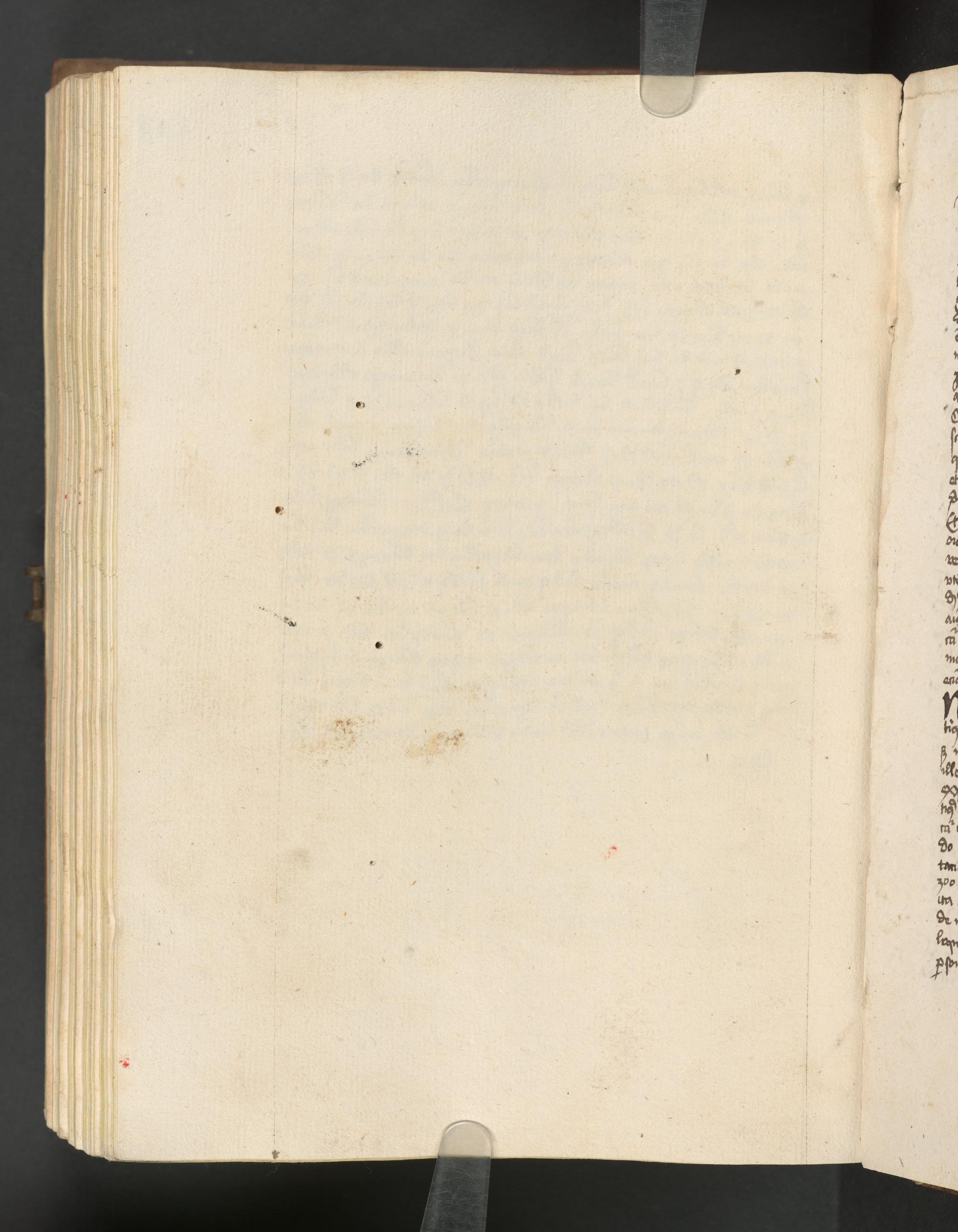 1r Fragment eines Einblattdruckes: Sixtus IV. papa: Bulla (Sancto ac pio desiderio). Betr. Ablass zum Besten der Kirche SS. Mariae, Andreae et Amandi zu Urach (Rom, 5.1.1480/81)