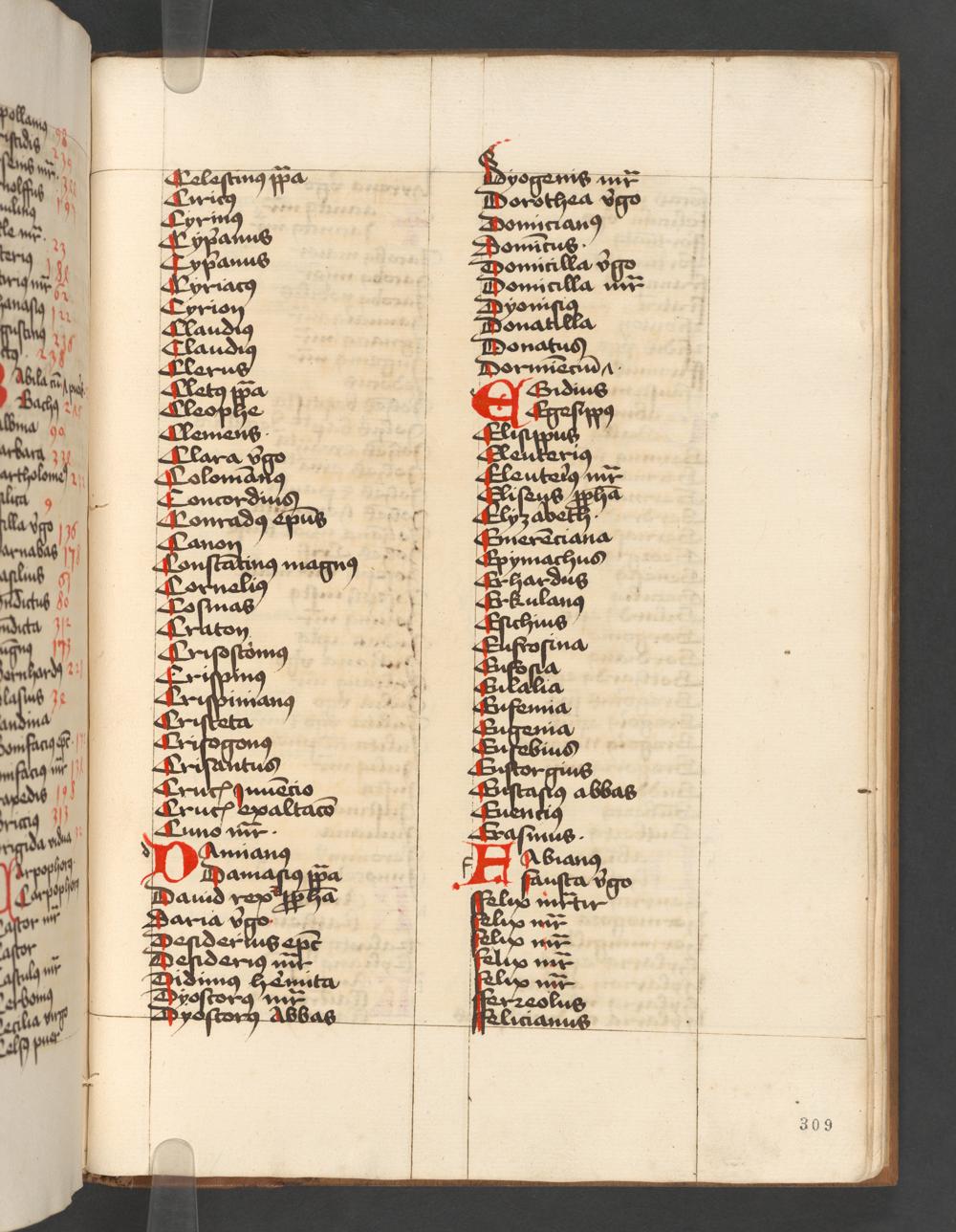 308va-311rb Tabula nominum sanctorum secundum ordinem alphabeti