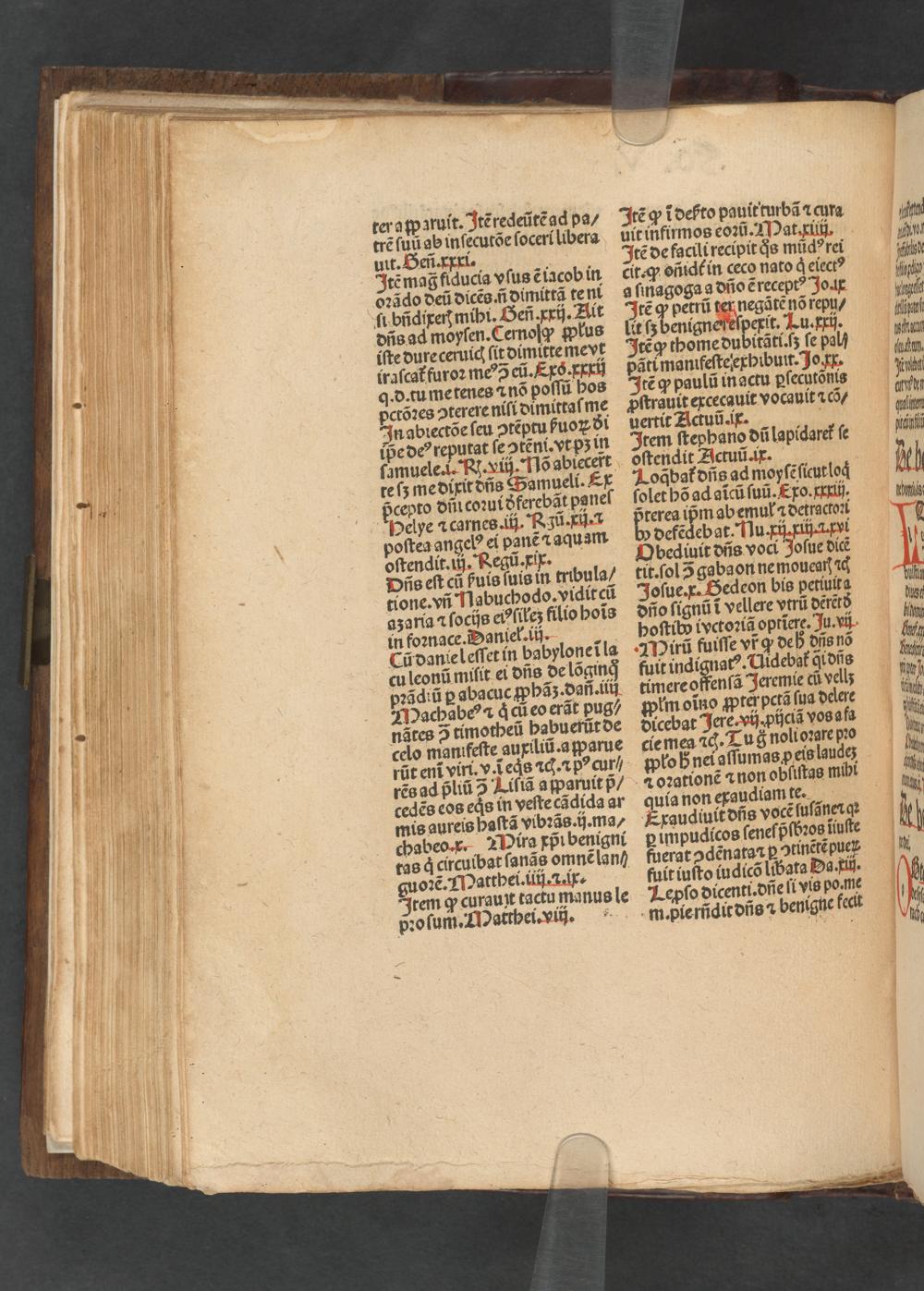 — pctõꝛes ↄterere niſi dimittaſme Pſtrauit excecauit vocauit acõ/ In abiectõe ſeu ↄtẽptu ſuoꝝ ðl uertit Actuũ.ix. ipᷣe deꝰ reputat ſe tẽni.vt pʒ in Item ſtephano dũ lapidaret᷑ ſe famuele.. W. viij. Nõ abiecert oſtendit Actuũ. ix. te ſz me dixit dñs Samueli. Ex oꝗᷓbat᷑ dñs ad moyſẽᷣſi icut loq pcepto din coꝛui ðferebãt paneſ ſolet hõ ad aĩcũ ſuũ.Exo.xxxiij. HPelye 1 carnes. iij. Rʒũ. xij·⁊ hinen ipm abemula detractoꝛi poſtea angelꝰ ei panẽ ⁊ aquam defẽdeb at. Nu. xij. xiij.a.xvi oſtendit.iij. Regũ.xix. Obediuit dñs voci Joſue dicẽ Dñs eſt cũ puis ſuis in tribula/ tit. ſol 3 gabaon ne mouear ad tione. vñ Nabuchodo.vidit cũ Joſue.x. Bedeon bis petiuita aʒaria a ſocijs eiꝰſileʒ filio hoĩs dño ſignũĩ vellere vtrũ dẽrẽtð in foꝛnace. Daniel. iij. bppoſtibw ivctoꝛiã optiĩerę. Ju. vij Cũ danie leſſet in babyloneĩ la Mirũ fuiſſe vũ q deß dñs nõ cu leonũ milit ei dñs de lõginqj fuit indignatꝰ. Uidebat qidñs ꝛãdiũ ꝑ abacuc ꝓhõãʒ.dañ.iiij timere offenſã Jeremie cũ vell⸗ Machabeꝰ ⁊ q cũ eo erãt pug/ plm oĩno gpter pctã ſua delere nãtes 5 timotheũ babuerũt de dicebat J ere. vij. pijciã vos afa celo manifeſte auxiliũ · aparue cie men aG. Tug noli oꝛare pꝛo rũt enĩ viri. v. ĩ eqs ad. ⁊pꝰ cur, plob nei aſſumas ꝓ eis laudeʒ rẽs ad pliũ 5 Liſiã a paruit pᷣ/ a oꝛationẽ ⁊ non obſiſtas mibi cegẽs eos eqs in veſte cãdida ar quia non exaudiam te. mis aureis haſtã vibꝛãs.ij.ma/ Erxaudiuit dñs vocẽ ſuſãnerqꝛ Mira pñi benigni pimpudicos ſeneſpbꝛos iiuſte