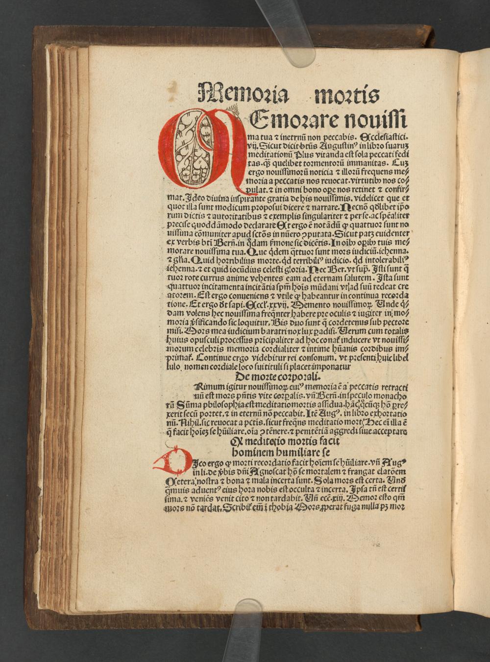 Emoꝛare nouiſt matua ⁊ inetrn non peccabis. Nccleſiaſtici. i. Sicut dicitbtũs Anguſtinꝰ in libꝛo ſuaruʒ meditationũ Plus vitanda eſt ſola peccatifedi ras.qᷓ; quelibet toꝛmentoꝛũ immanitas. Cuzʒ ergo nouiſſimoꝛũ noticia ⁊ iloꝛũ frequens me⸗ moꝛia a peccatis nos reuocat · virtutib nos co⸗