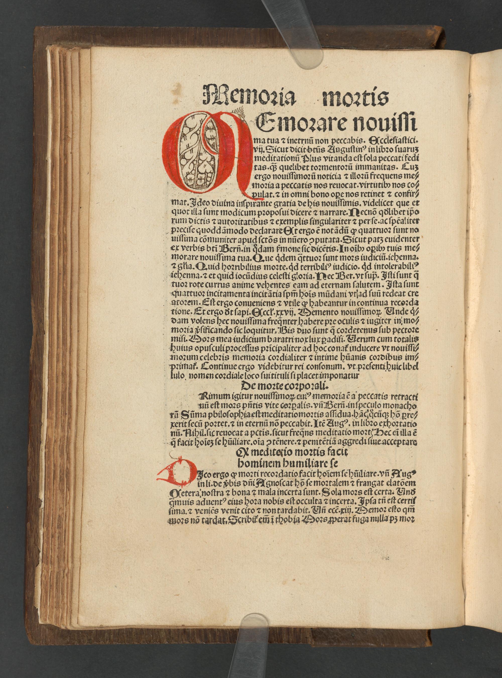 o nomen coꝛdiale loco ſuitituli ſiplacetimponatur Ddde moꝛte coꝛpoꝛsli. MRimum igitur nouiſſimoꝝ cuiꝰ memoꝛiaẽ a peccatis retracti nñ eſt moꝛs pñtis vite coꝛpalis.vñ Berñ in ſpeculo monacho