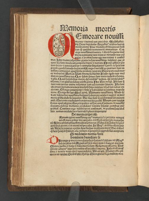 roꝛem. Eſt ergo conueniens ⁊ vtile ꝙ habeantur in continua reco?da tione. Et ergo ðt ſapi. Qccł· xxvij. Memento nouiſſimoꝝ Vnde q⸗ dam volens hec nouiſſima freqᷓnter habere pꝛe oculis ⁊ iugiter in mo⸗