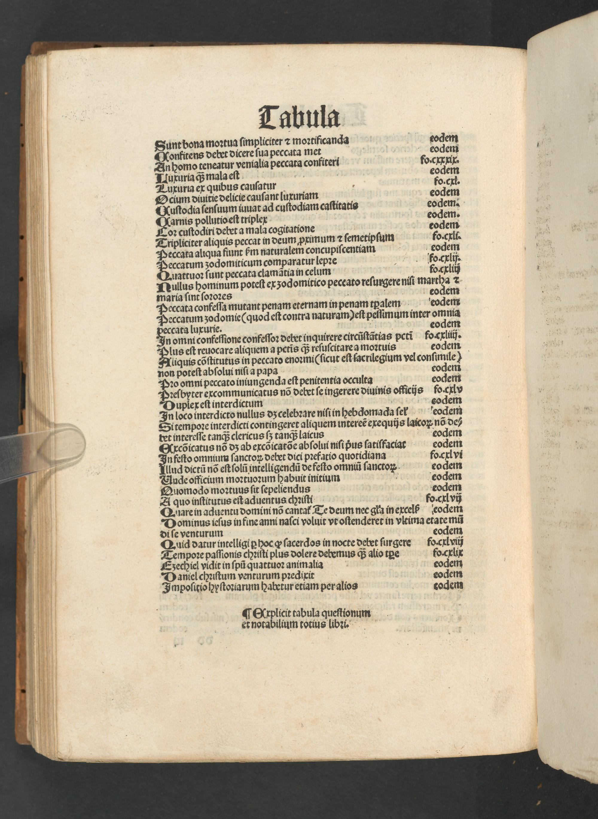 ¶ Gxplicit tabula queſtionum et notabilium totius libꝛi.