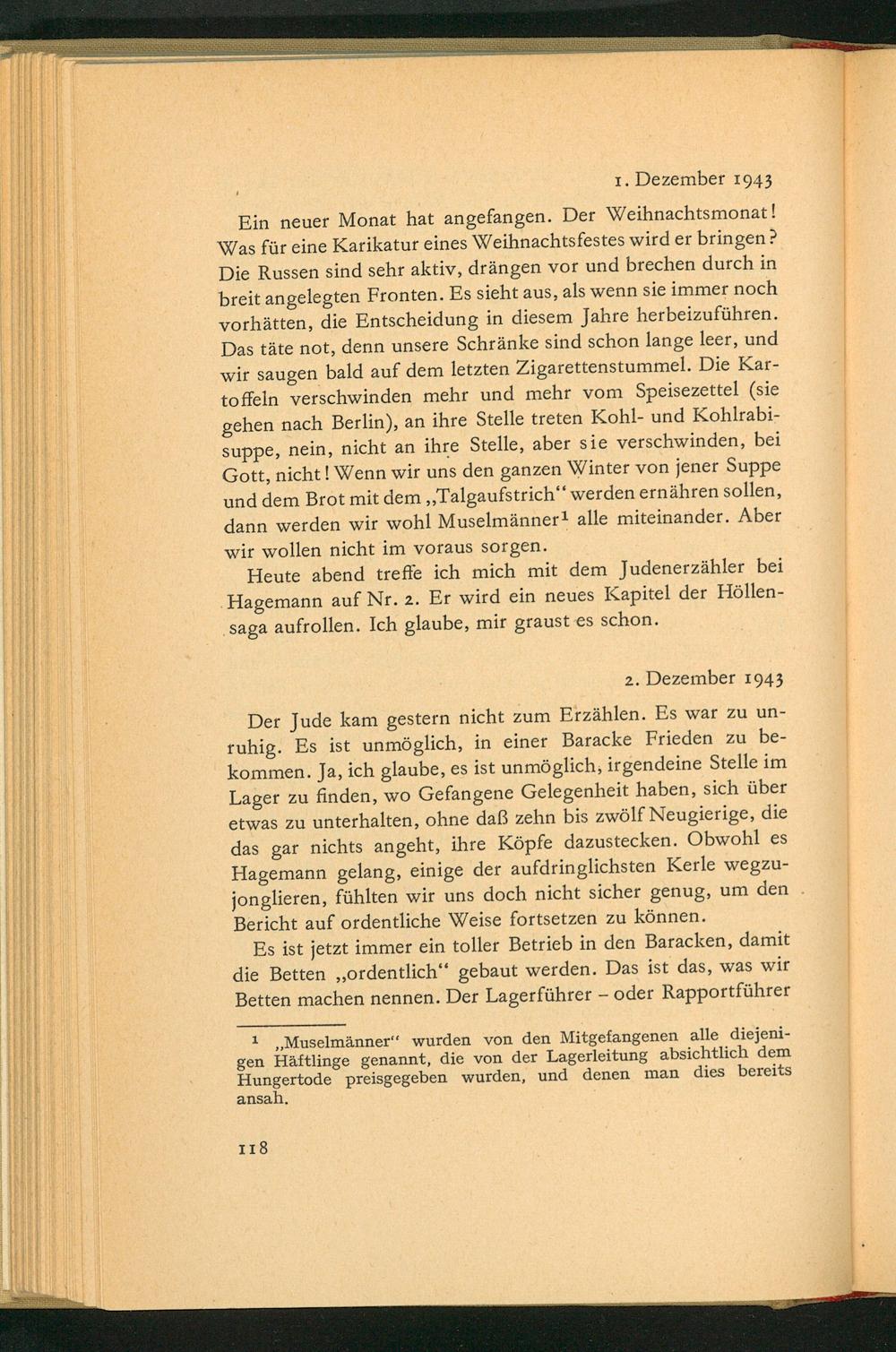 1 ‚Muselmänner‘“ wurden von den Mitgefangenen alle diejeni- gen Häftlinge genannt, die von der Lagerleitung absichtlich dem Hungertode preisgegeben wurden, und denen man dies bereits ansah.