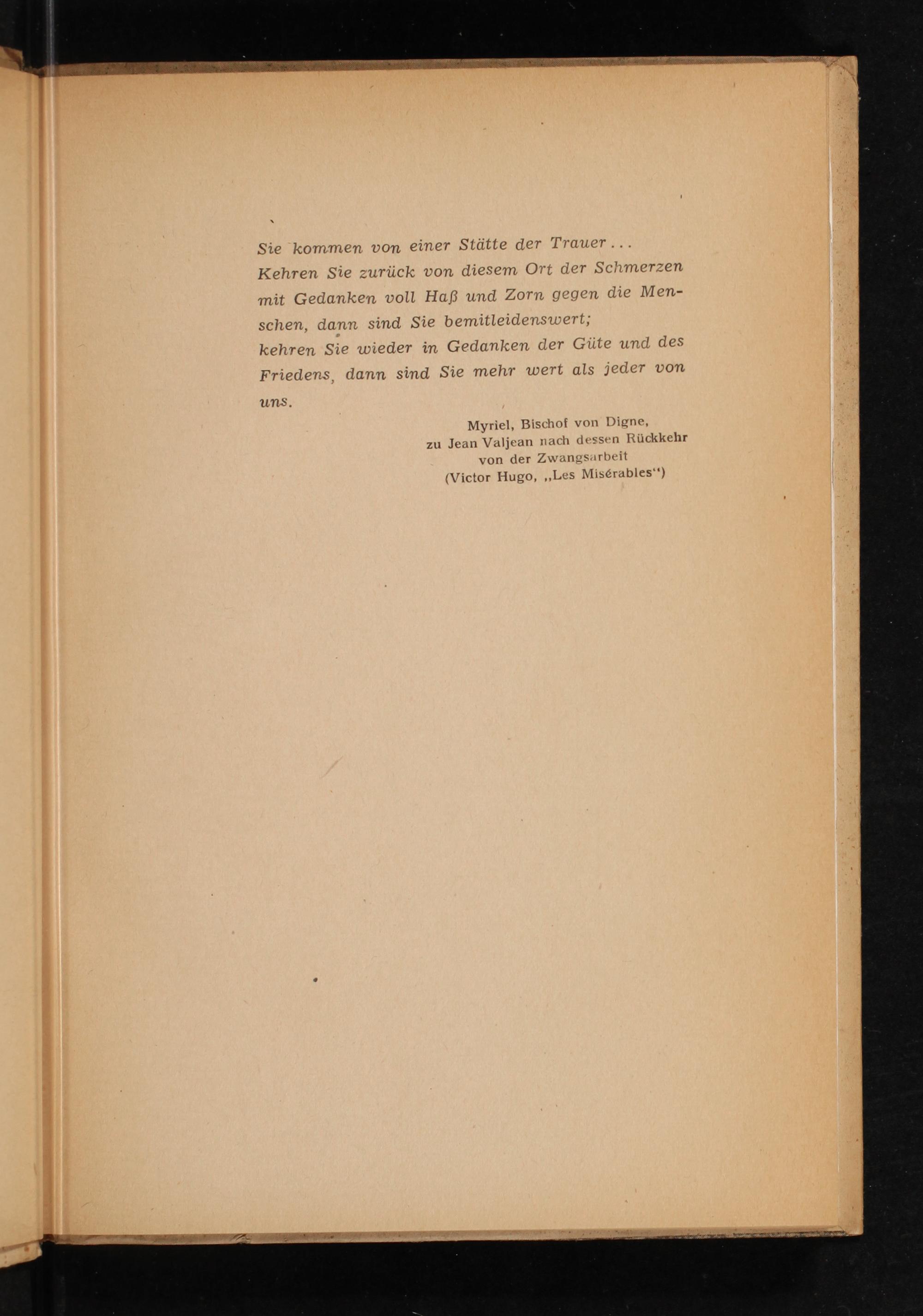 Sie kommen von einer Stätte der Trauer... Kehren Sie zurück von diesem Ort der Schmerzen mit Gedanken voll Haß und Zorn gegen die Men- schen, dann sind Sie bemitleidenswert;