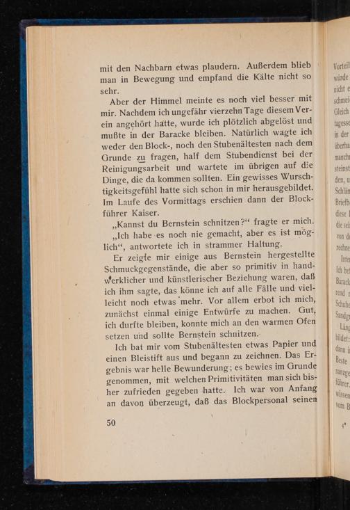 ,, Kannst du Bernstein schnitzen?" fragte er mich. ,, Ich habe es noch nie gemacht, aber es ist möglich", antwortete ich in strammer Haltung.