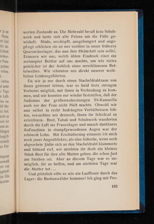 Und plötzlich eilte es wie ein Lauffeuer durch das Lager: die Buchenwälder kommen! Ich ging mit Pro
