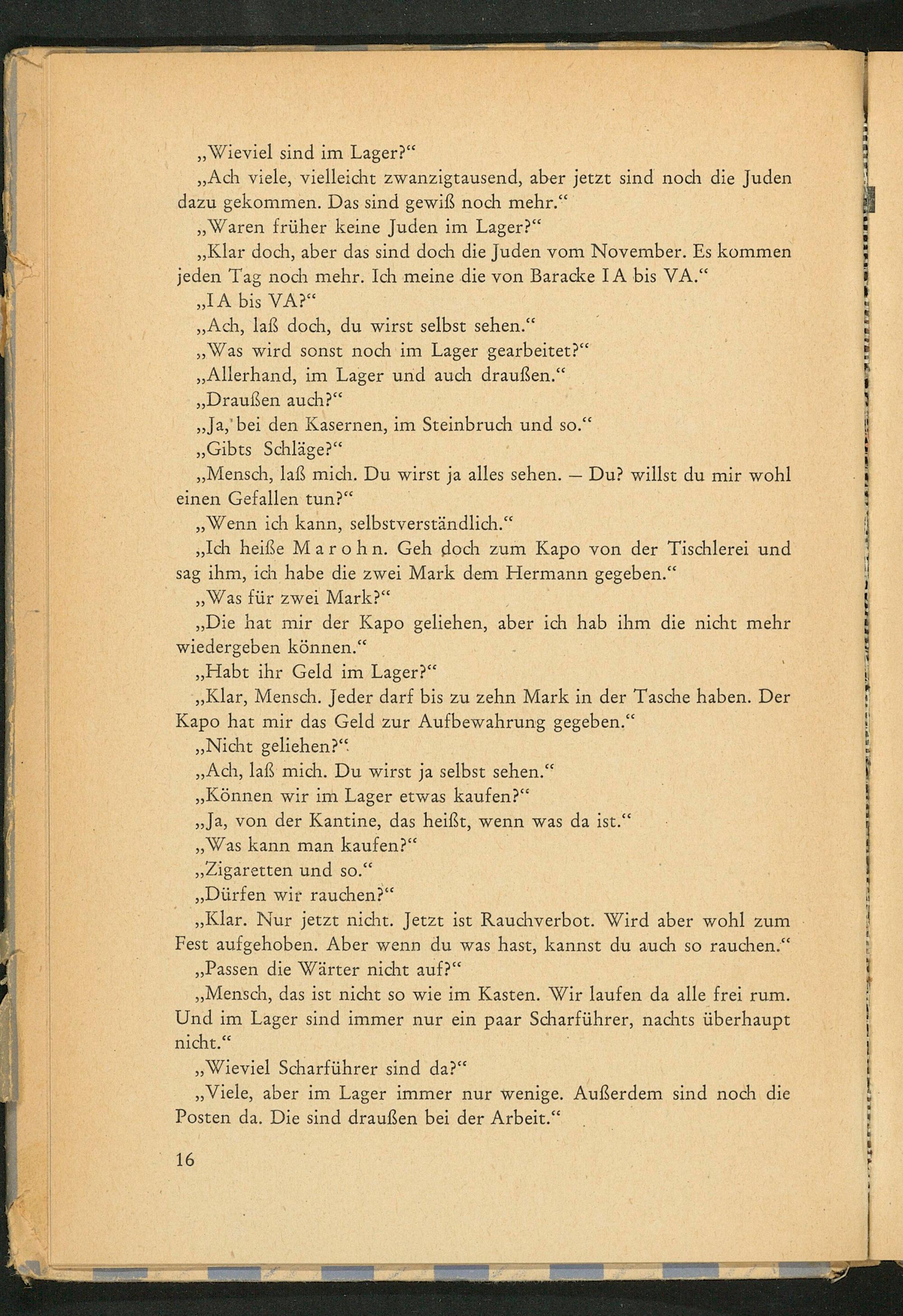 ,, Klar, Mensch. Jeder darf bis zu zehn Mark in der Tasche haben. Der Kapo hat mir das Geld zur Aufbewahrung gegeben."