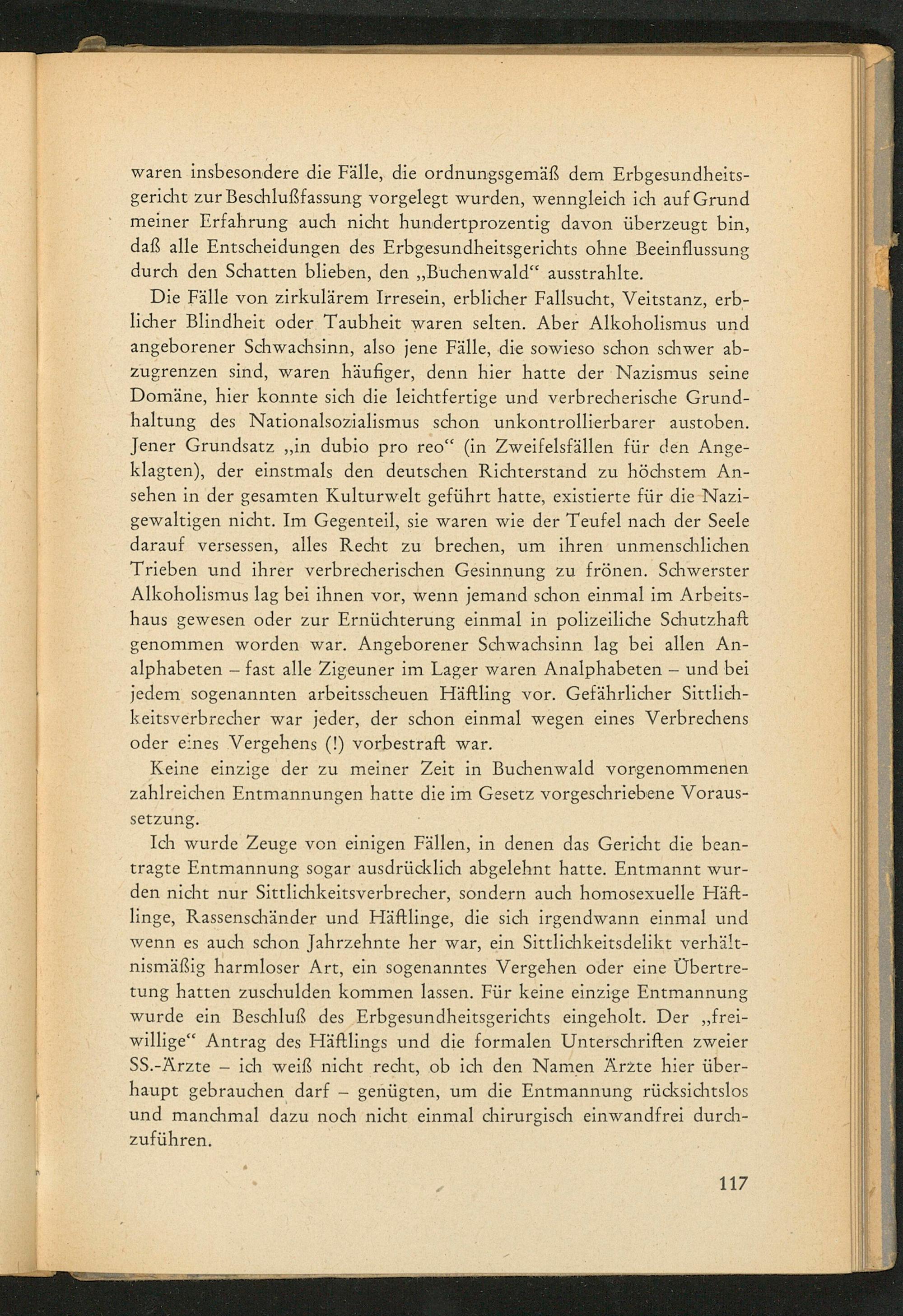 Keine einzige der zu meiner Zeit in Buchenwald vorgenommenen zahlreichen Entmannungen hatte die im Gesetz vorgeschriebene Voraussetzung.