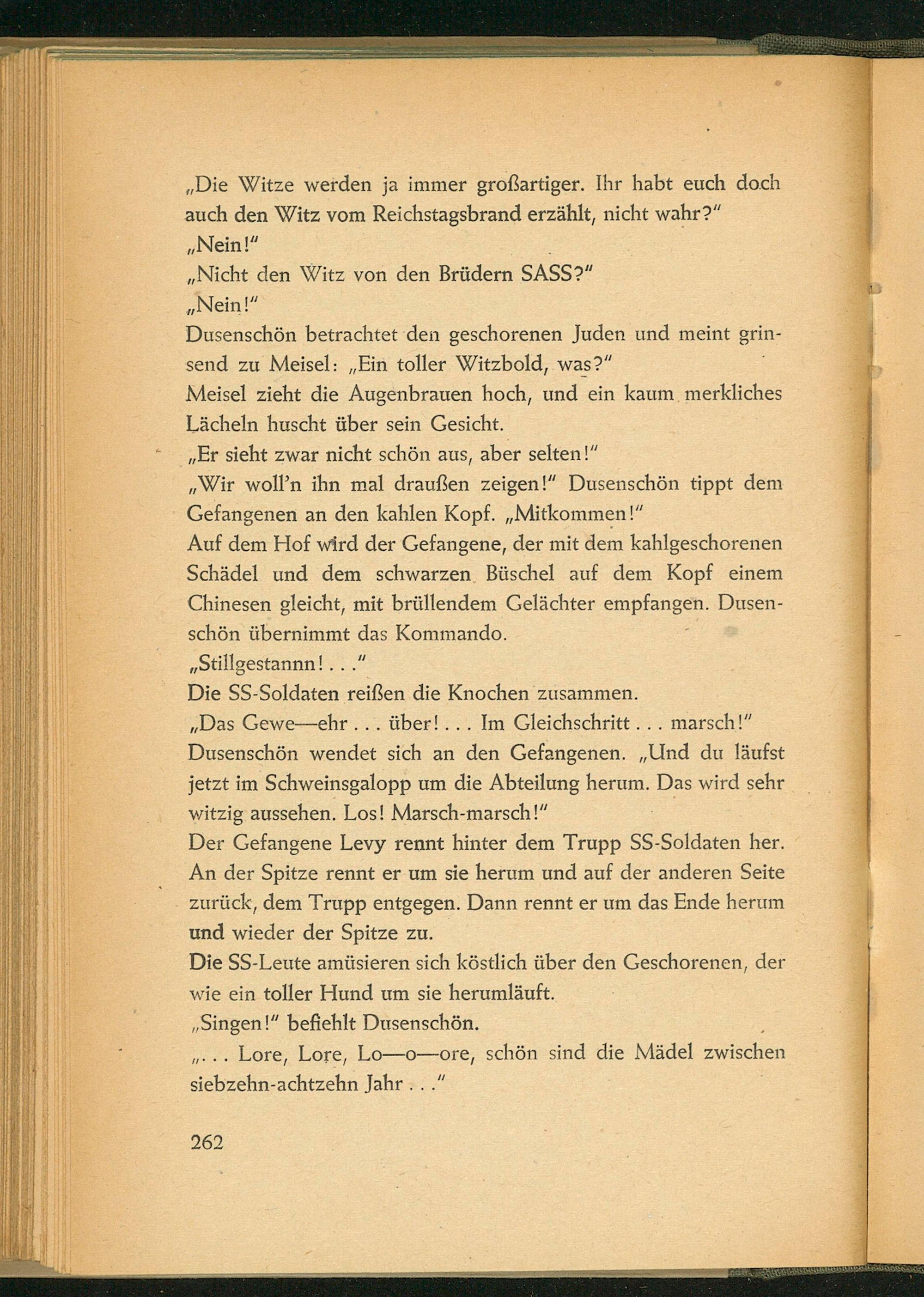 ,, Die Witze werden ja immer großartiger. Ihr habt euch doch auch den Witz vom Reichstagsbrand erzählt, nicht wahr?" ,, Nein!"