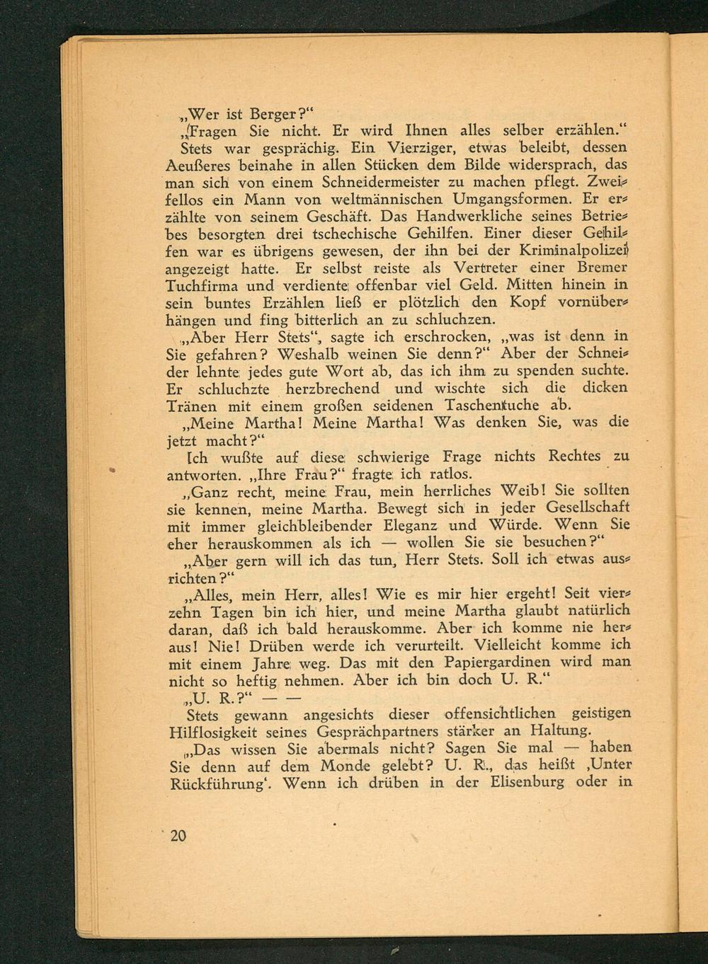 „Das wissen Sie abermals nicht? Sagen Sie mal— haben Sie denn auf dem Monde gelebt? U. R., das heißt ‚Unter Rückführung‘. Wenn ich drüben in der Elisenburg oder in