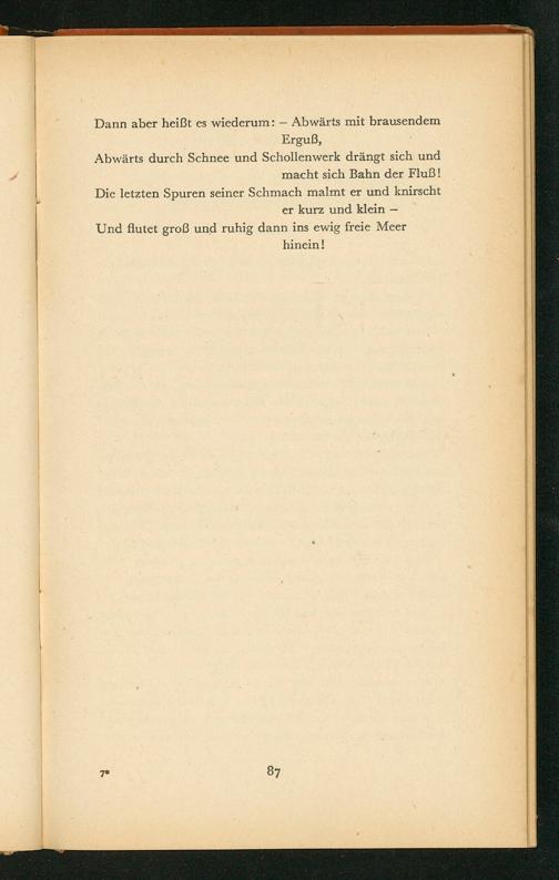 Dann aber heißt es wiederum:— Abwärts mit brausendem Erguß,