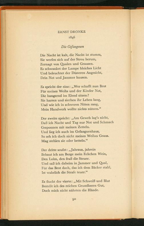 Es flucht der vierte: ,, Mit Schweiß und Blut Bestellt ich des reichen Grundherrn Gut, Doch mich nicht nährten die Hände.