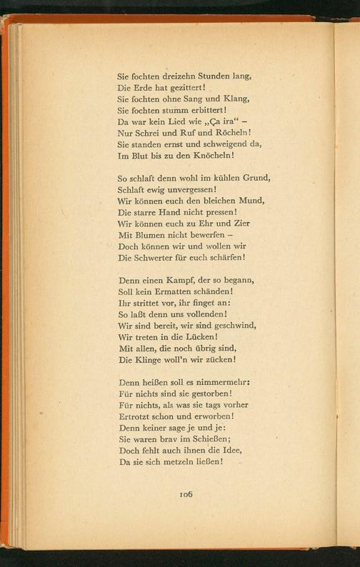 Denn keiner sage je und je: Sie waren brav im Schießen; Doch fehlt auch ihnen die Idee, Da sie sich metzeln ließen!