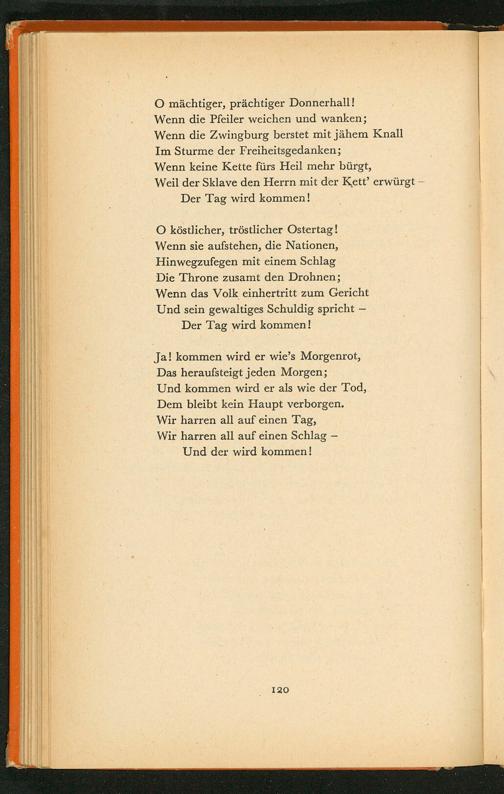 Und kommen wird er als wie der Tod, Dem bleibt kein Haupt verborgen. Wir harren all auf einen Tag,