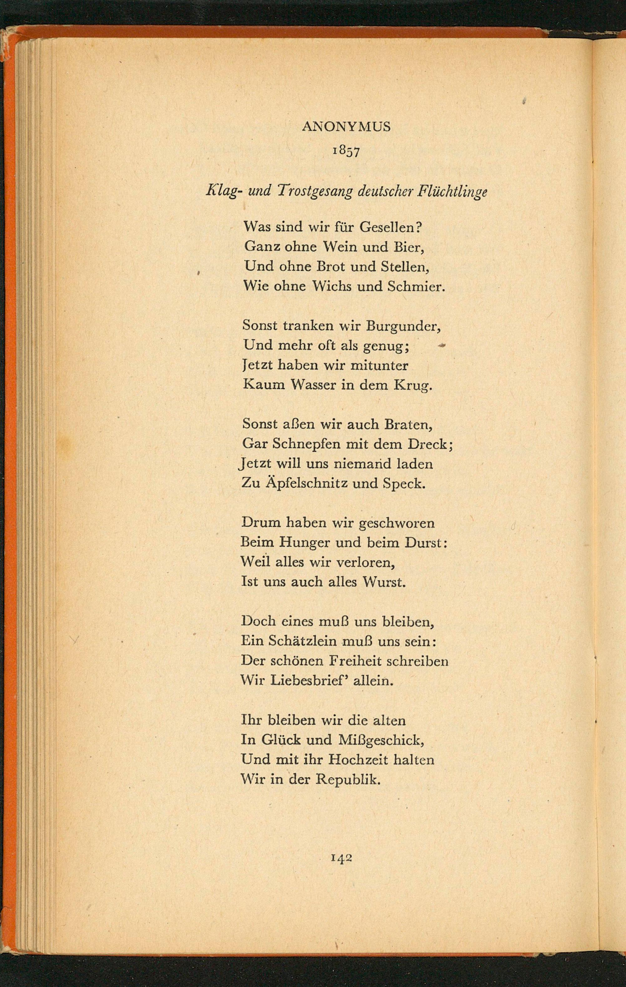 Sonst tranken wir Burgunder, Und mehr oft als genug;+ Jetzt haben wir mitunter Kaum Wasser in dem Krug.