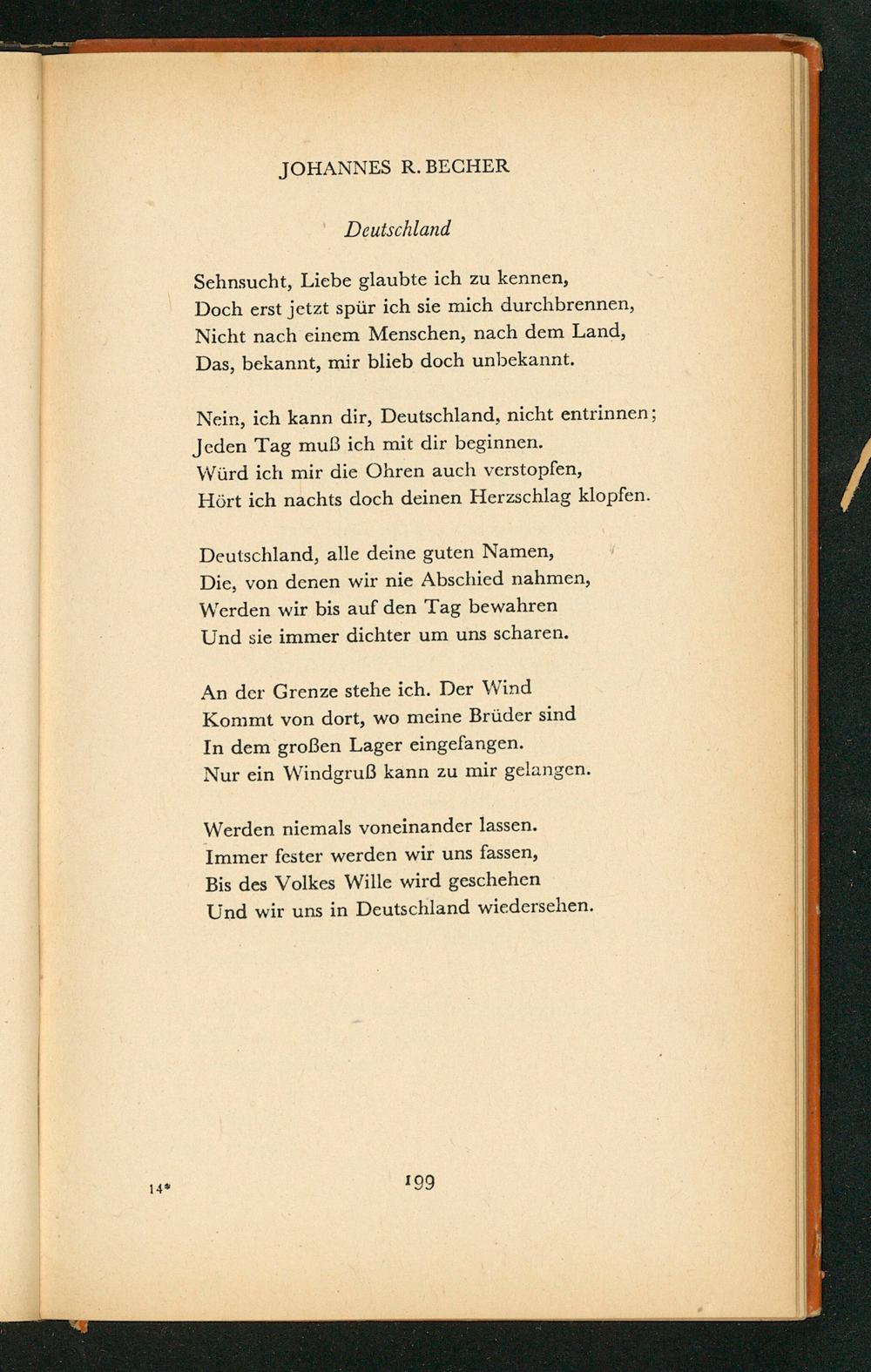 Deutschland , alle deine guten Namen, Die, von denen wir nie Abschied nahmen, Werden wir bis auf den Tag bewahren Und sie immer dichter um uns scharen.