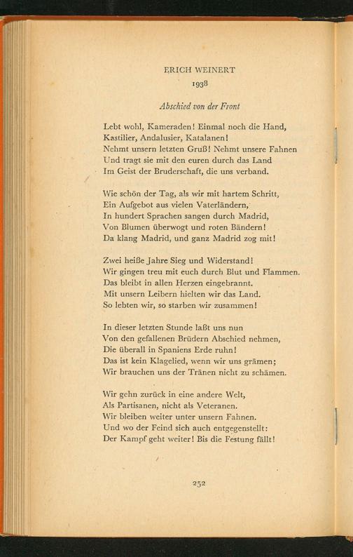 In dieser letzten Stunde laßt uns nun Von den gefallenen Brüdern Abschied nehmen, Die überall in Spaniens Erde ruhn!