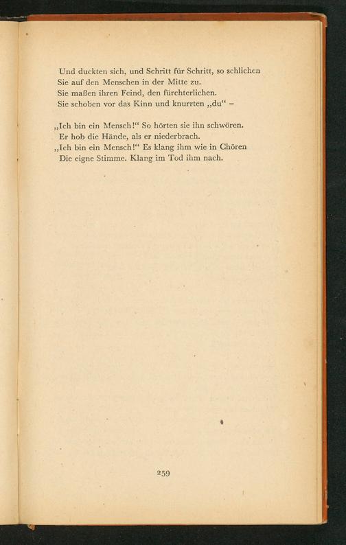 Er hob die Hände, als er niederbrach. „Ich bin ein Mensch!“ Es klang ihm wie in Chören Die eigne Stimme. Klang im Tod ihm nach.