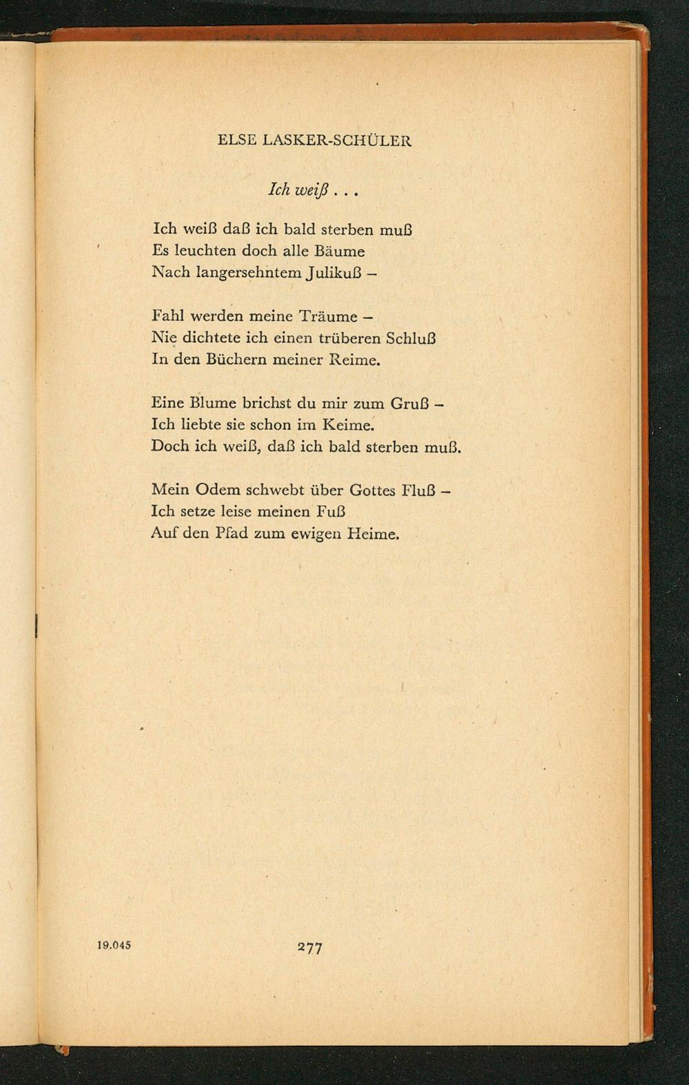Ich weiß daß ich bald sterben muß Es leuchten doch alle Bäume Nach langersehntem Julikuß—