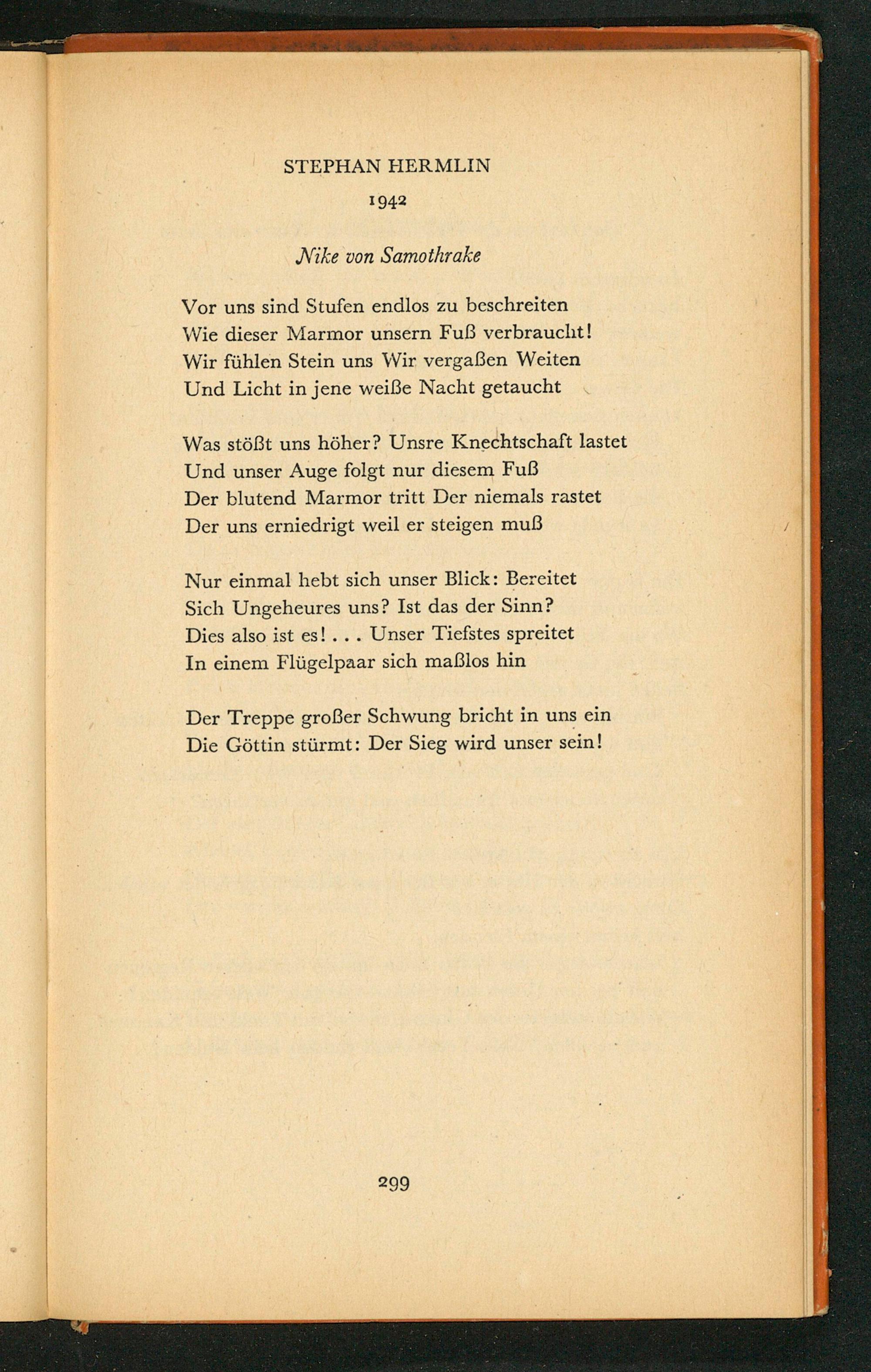 Vor uns sind Stufen endlos zu beschreiten Wie dieser Marmor unsern Fuß verbraucht! Wir fühlen Stein uns Wir vergaßen Weiten Und Licht in jene weiße Nacht getaucht
