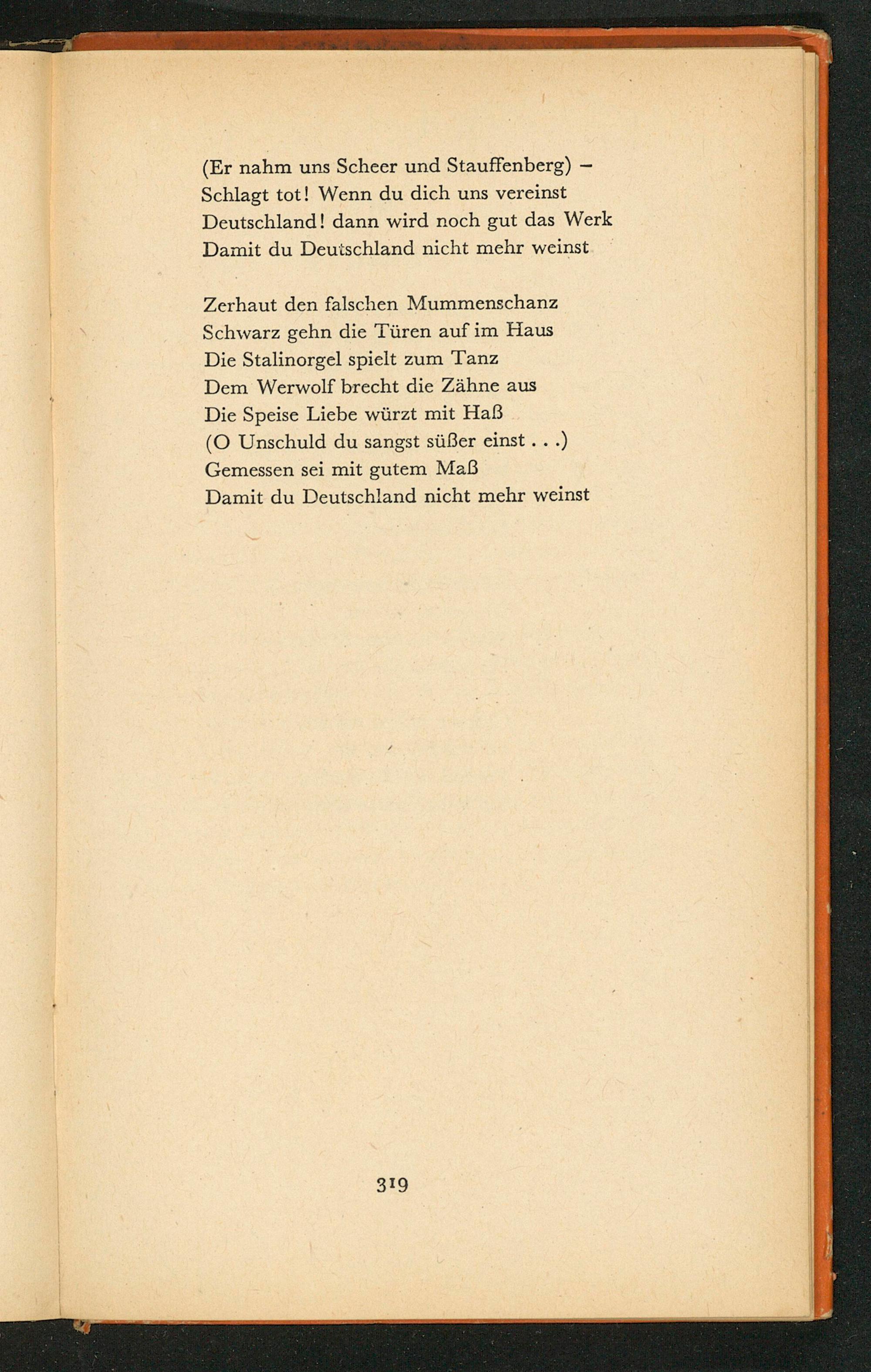 (Er nahm uns Scheer und Stauffenberg )— Schlagt tot! Wenn du dich uns vereinst Deutschland ! dann wird noch gut das Werk Damit du Deutschland nicht mehr weinst