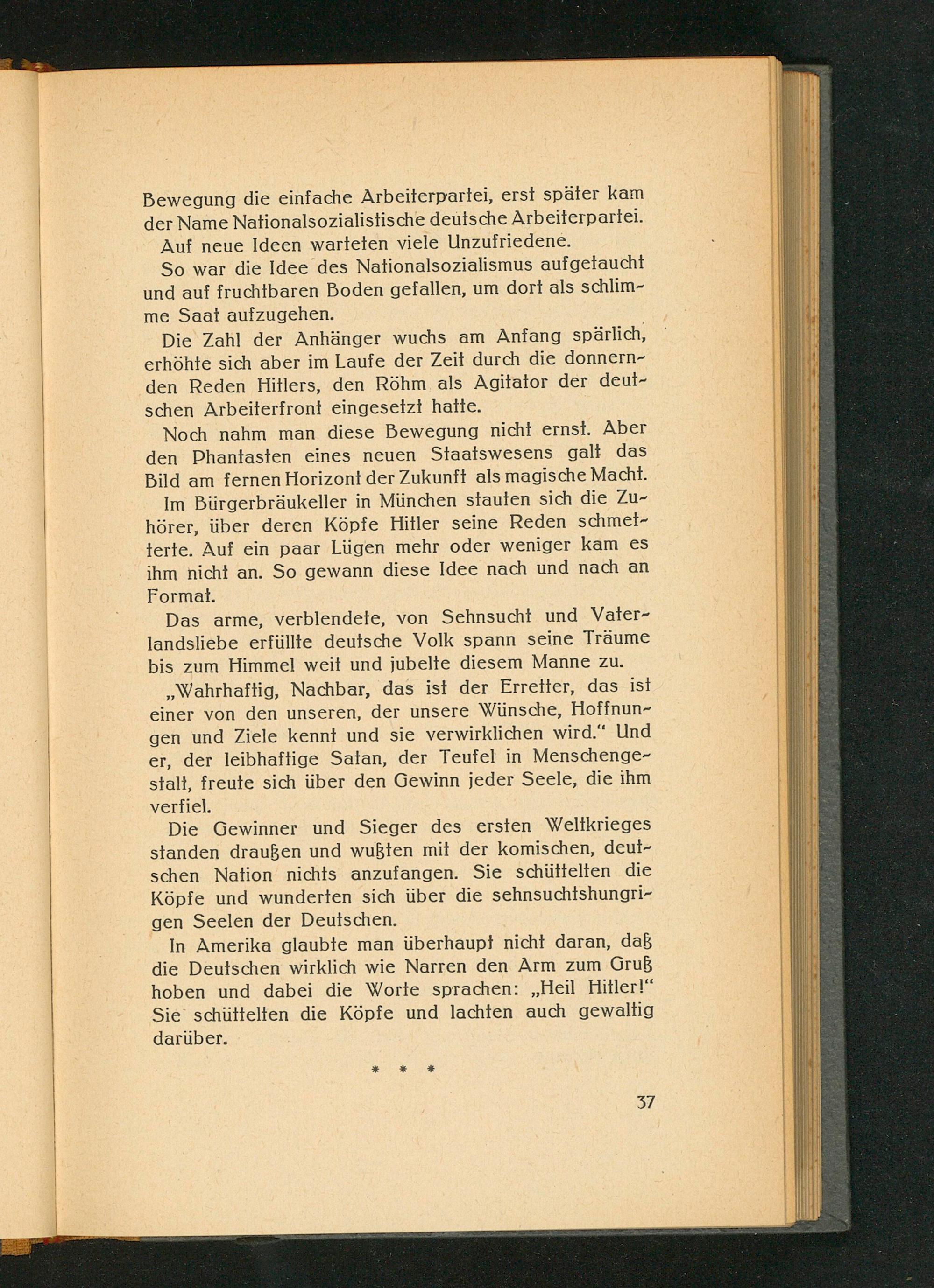 In Amerika glaubte man überhaupt nicht daran, daß die Deutschen wirklich wie Narren den Arm zum Gruß hoben und dabei die Worte sprachen:„ Heil Hitler!" Sie schüttelten die Köpfe und lachten auch gewaltig darüber.