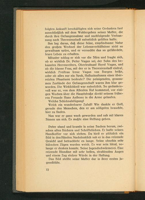 Mitunter schlug er sich vor die Stirn und fragte sich, ob er wirklich Dr. Peter Vagas sei, der Sohn des bekannten Herrenreiters, Oberleutnant Horst Vagas, und ob die blasse Frau, mit der er in Theresienstadt eintraf, wirklich Freifrau Irene Vagas von Bargen heiße, oder ob alles nur ein Spuk, Halluzinationen einer überreizten Phantasie bedeute? Die peinigenden, grausamen Zustände der Gefangenschaft waren ihm klar geworden. Die Wirklichkeit war entsetzlich. So gedankenvoll war er, von dem Altesten Raf kommend, vor einigen Wochen über die Hauptstraße direkt seinem früheren Freunde Hans Anthony in die Arme gelaufen.