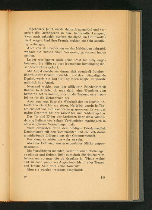 Die Vorsichtigen mahnten, keine falschen Hoffnungen zu nähren und riefen: ,, Seht euch doch die Hakenkreuzfahnen an, solange die da draußen im Winde wehen und ihr das Symbol vor Augen habt, bleibt alles Wunsch und Traum. Seid doch keine Narren!"