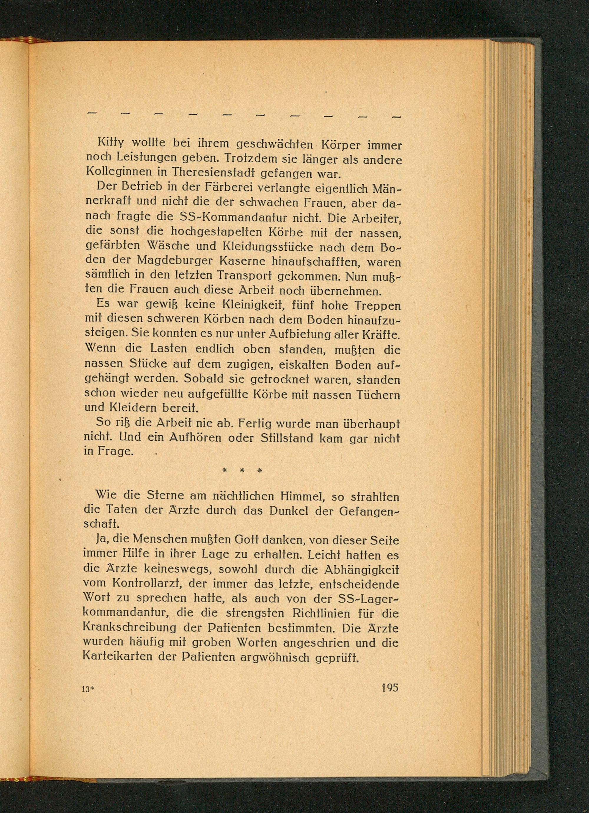 Kitty wollte bei ihrem geschwächten Körper immer noch Leistungen geben. Trotzdem sie länger als andere Kolleginnen in Theresienstadt gefangen war.