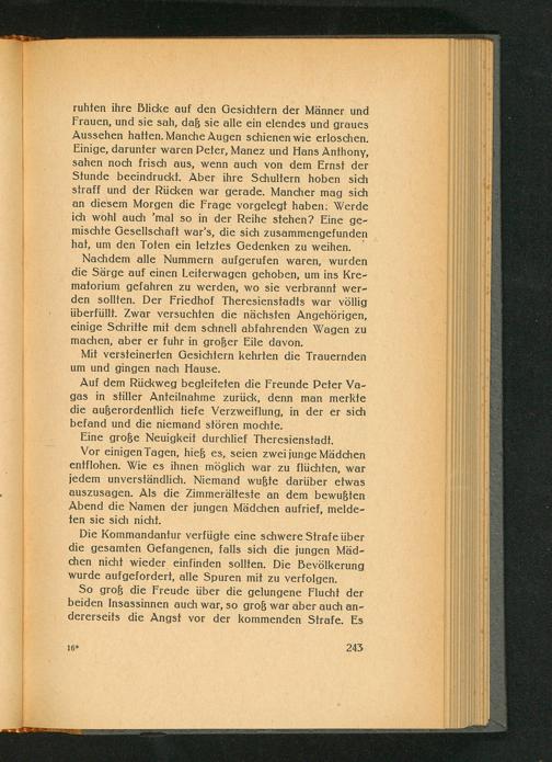 Vor einigen Tagen, hieß es, seien zwei junge Mädchen entflohen. Wie es ihnen möglich war zu flüchten, war jedem unverständlich. Niemand wußte darüber etwas auszusagen. Als die Zimmerälteste an dem bewußten Abend die Namen der jungen Mädchen aufrief, meldeten sie sich nicht.