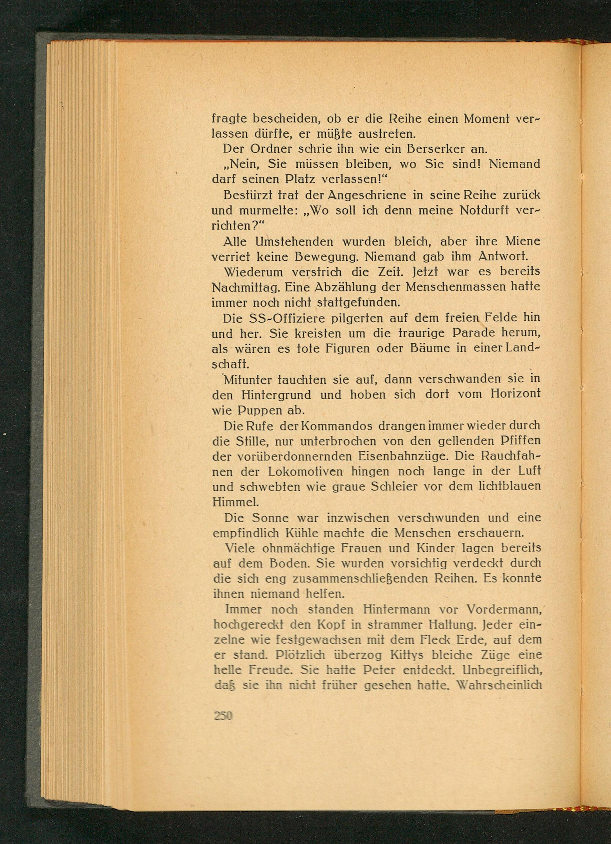 Die SS - Offiziere pilgerten auf dem freien Felde hin und her. Sie kreisten um die traurige Parade herum, als wären es tote Figuren oder Bäume in einer Landschaft.