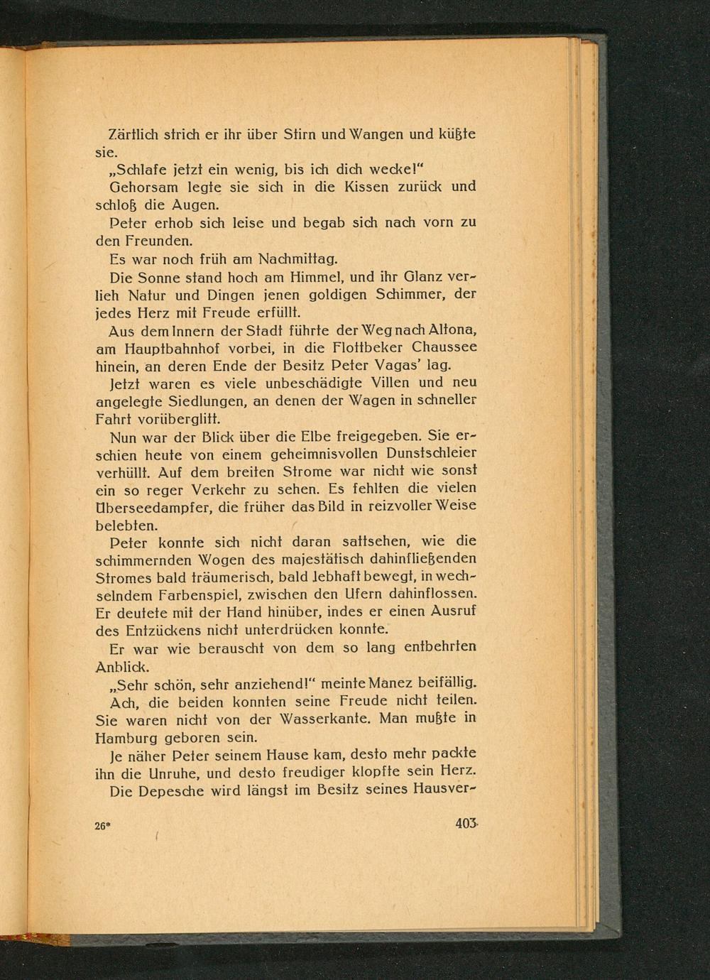 Je näher Peter seinem Hause kam, desto mehr packte ihn die Unruhe, und desto freudiger klopfte sein Herz. Die Depesche wird längst im Besitz seines Hausver