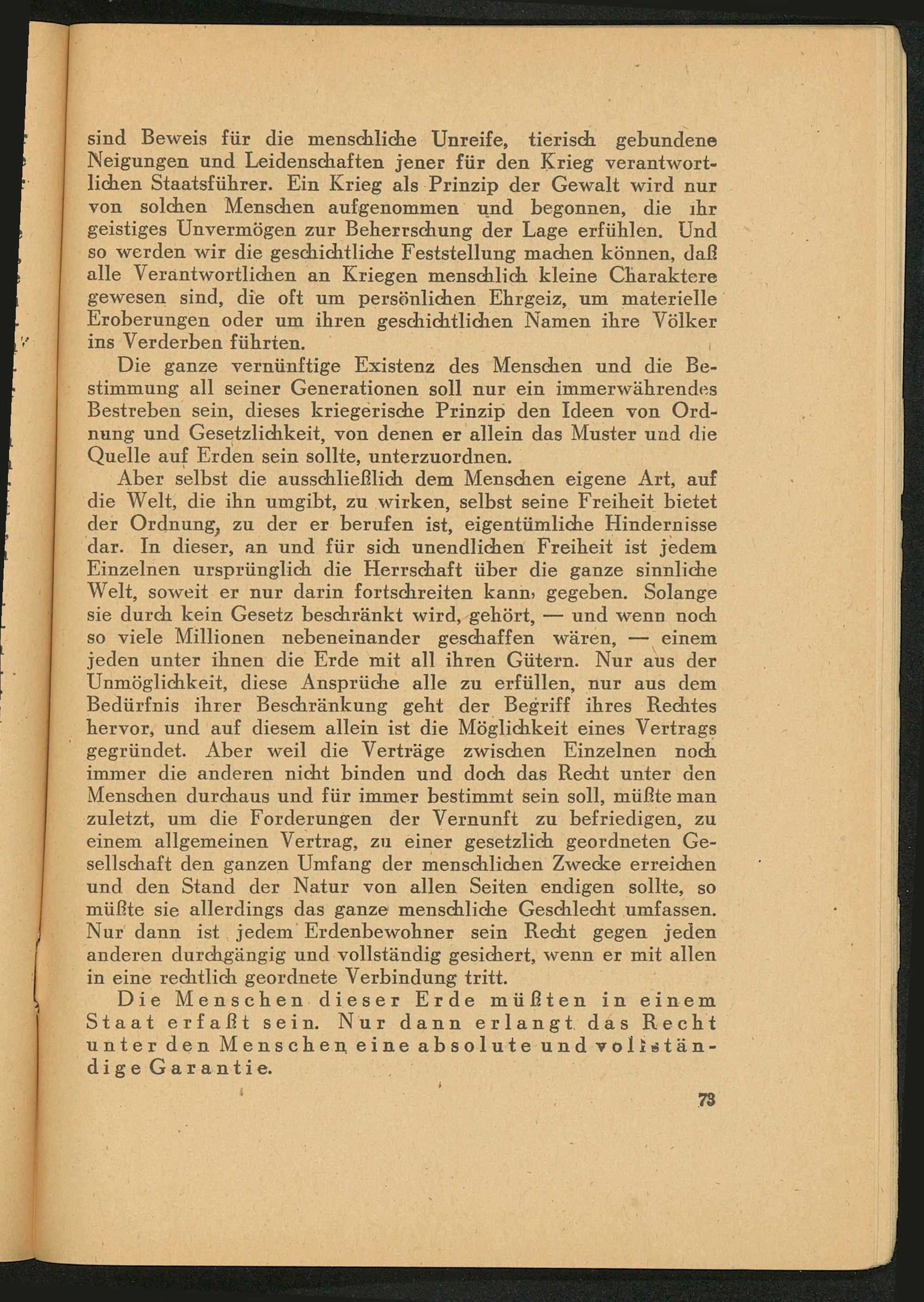 Die Menschen dieser Erde müßten in einem Staat erfaßt sein. Nur dann erlangt das Recht unter den Menschen eine absolute und vollstän dige Garantie.